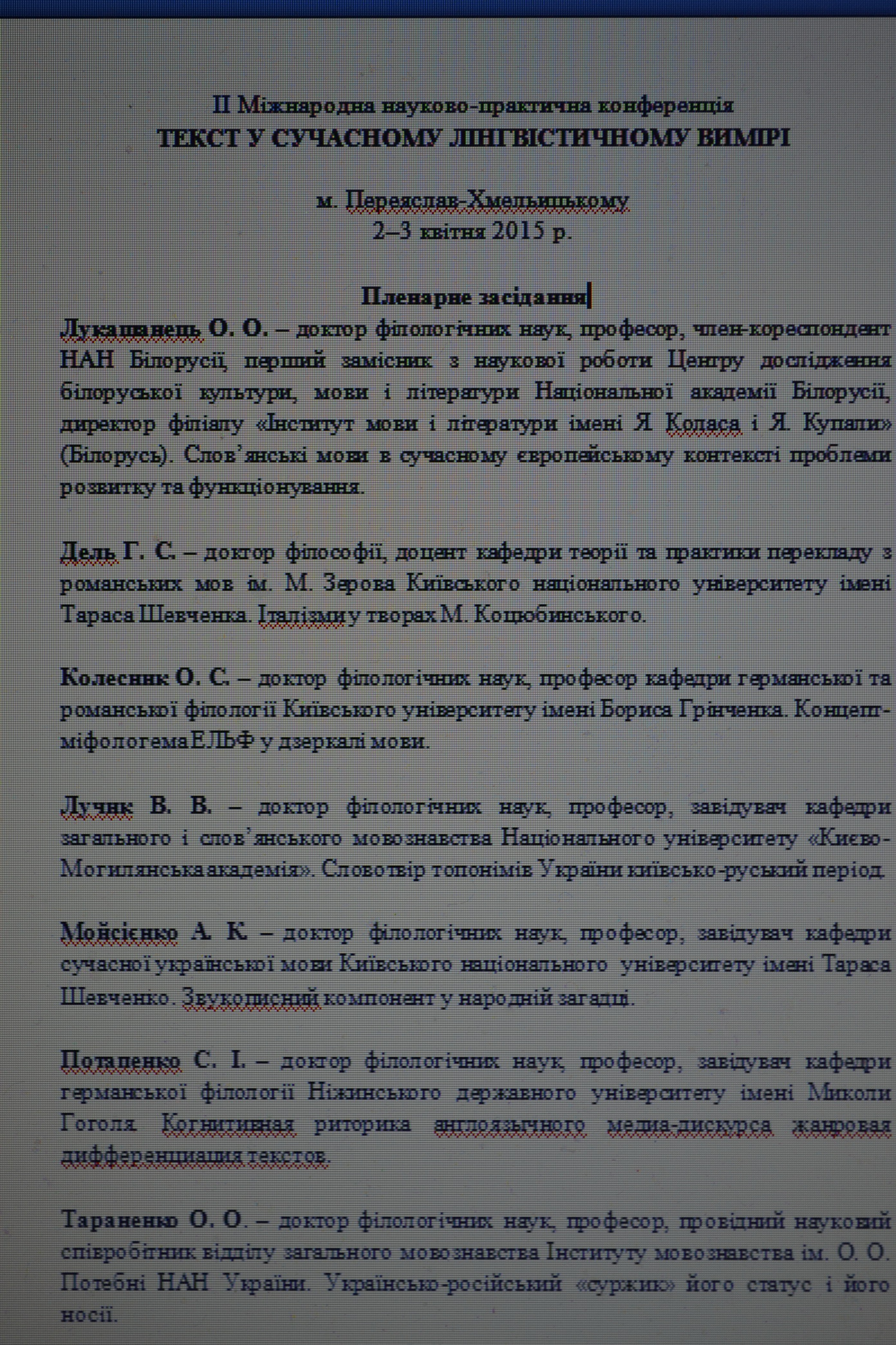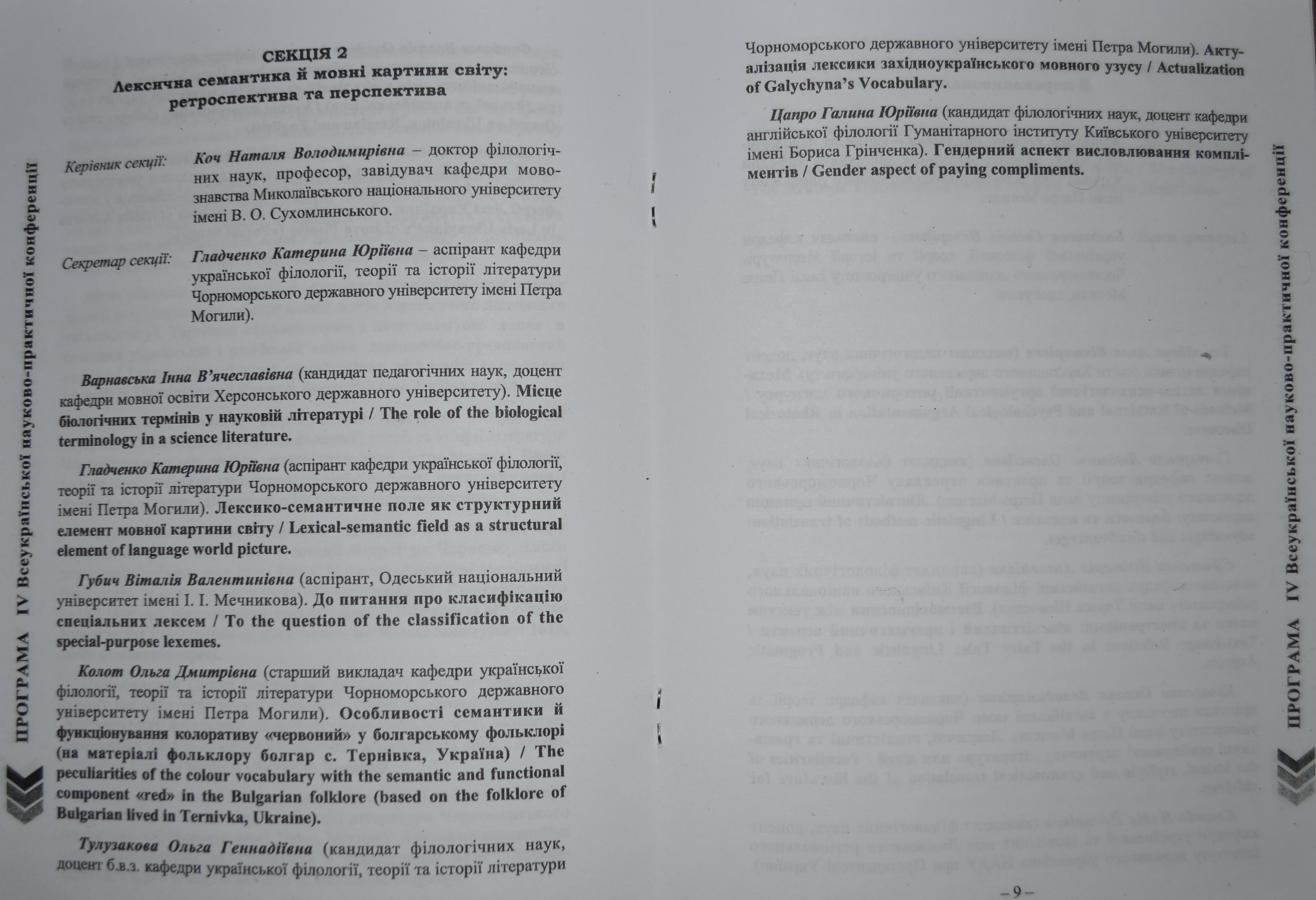 | 844 | Текст у сучасному лінгвістичному вимірі | Гендерний аспект стратегії моделювання комунікативної інтеракції (провокуюча тактика) | м. Переяслав-Хмельницький |