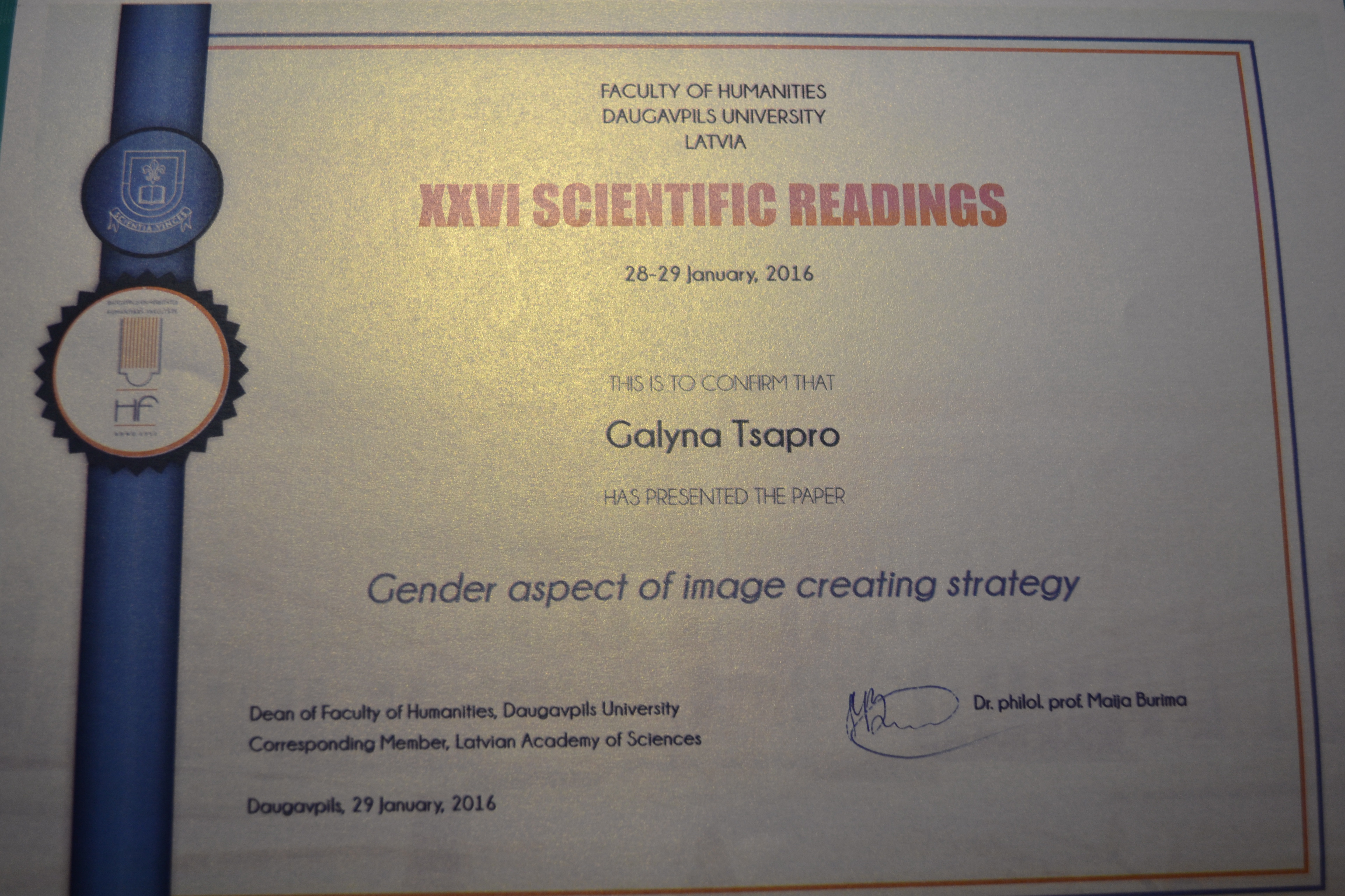 | 839 | XXVI Scientific Readings | Gender Aspect of Image Creating Strategy | Daugavpils University, Latvia |