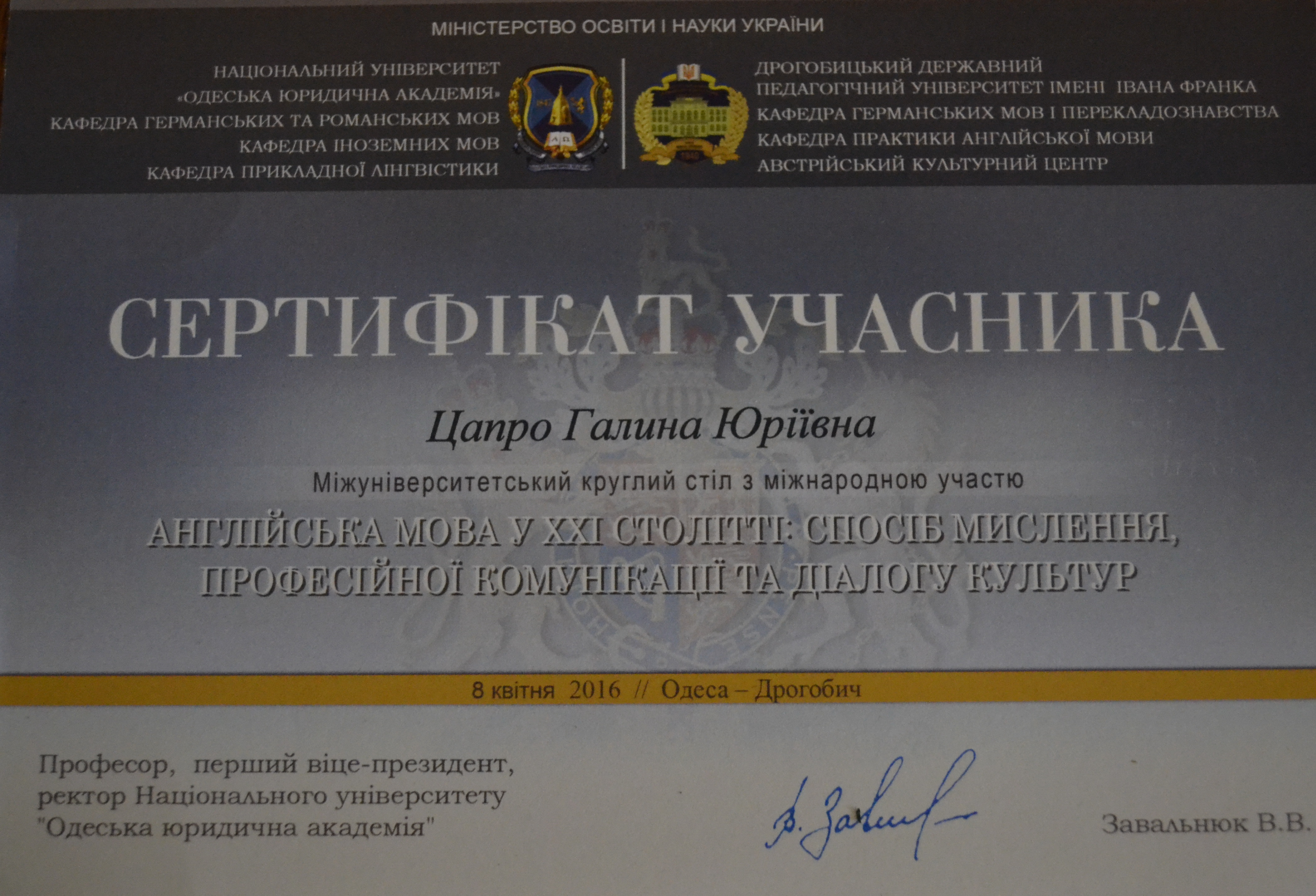 | 840 | Англіська мова у ХХ столітті: спосіб мислення, професійної комунікації та діалогу культур | Gender Peculiarities of Topic Deviation Tactics | Одеса-Дрогобич |