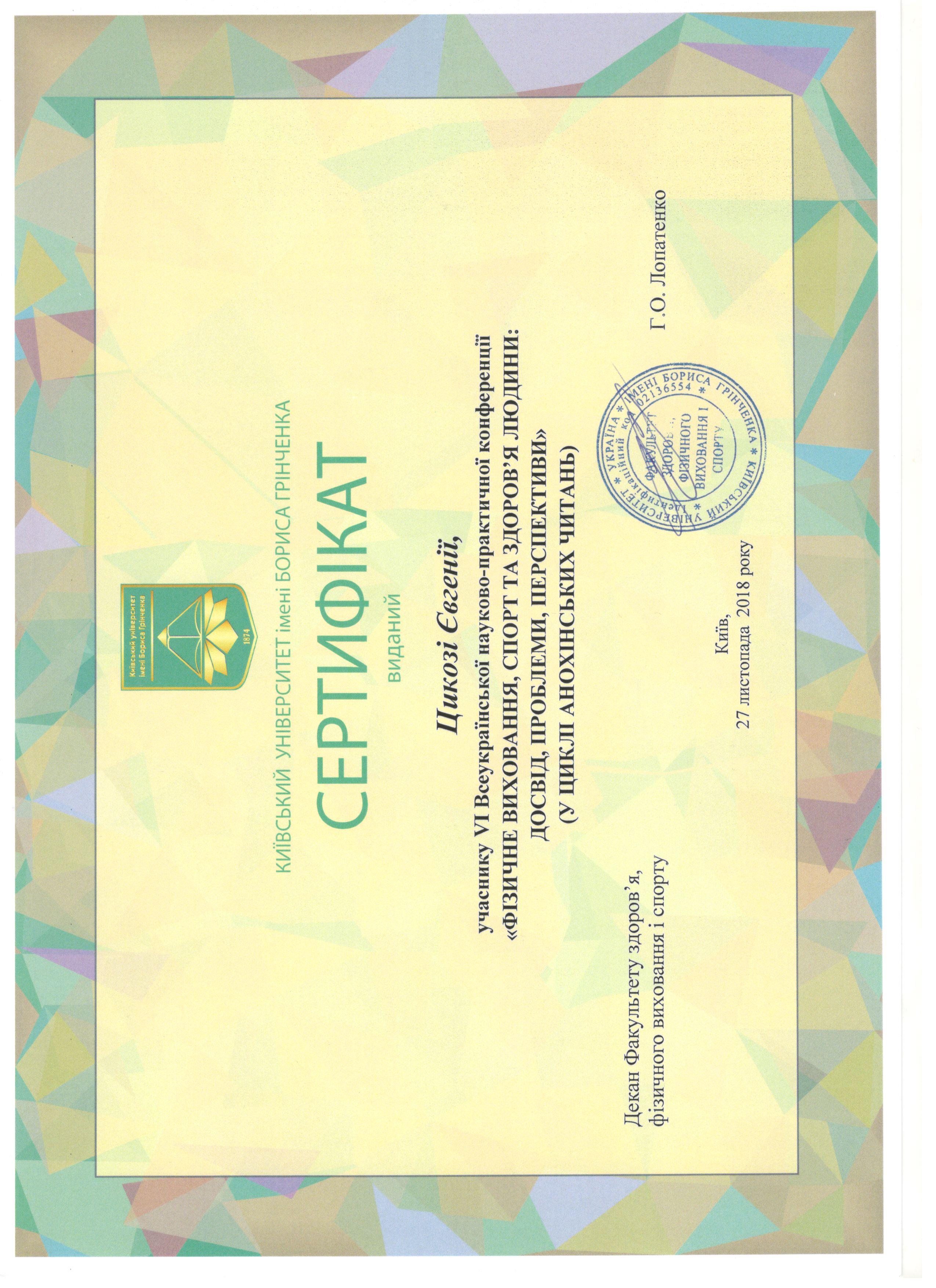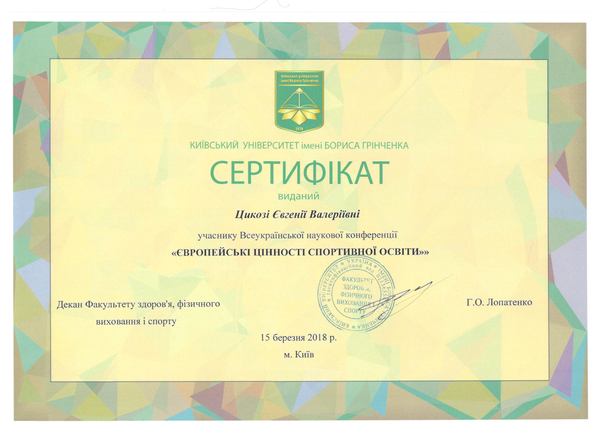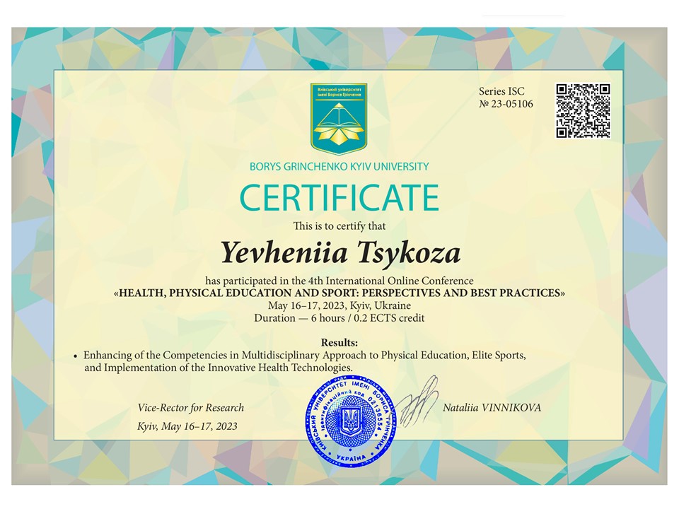 463 Факультет здоров'я, фізичного виховання і спорту Кафедра спорту та фітнесу 6 1 2025 https://www.researchgate.net/profile/Eugenia_Tsykoza
