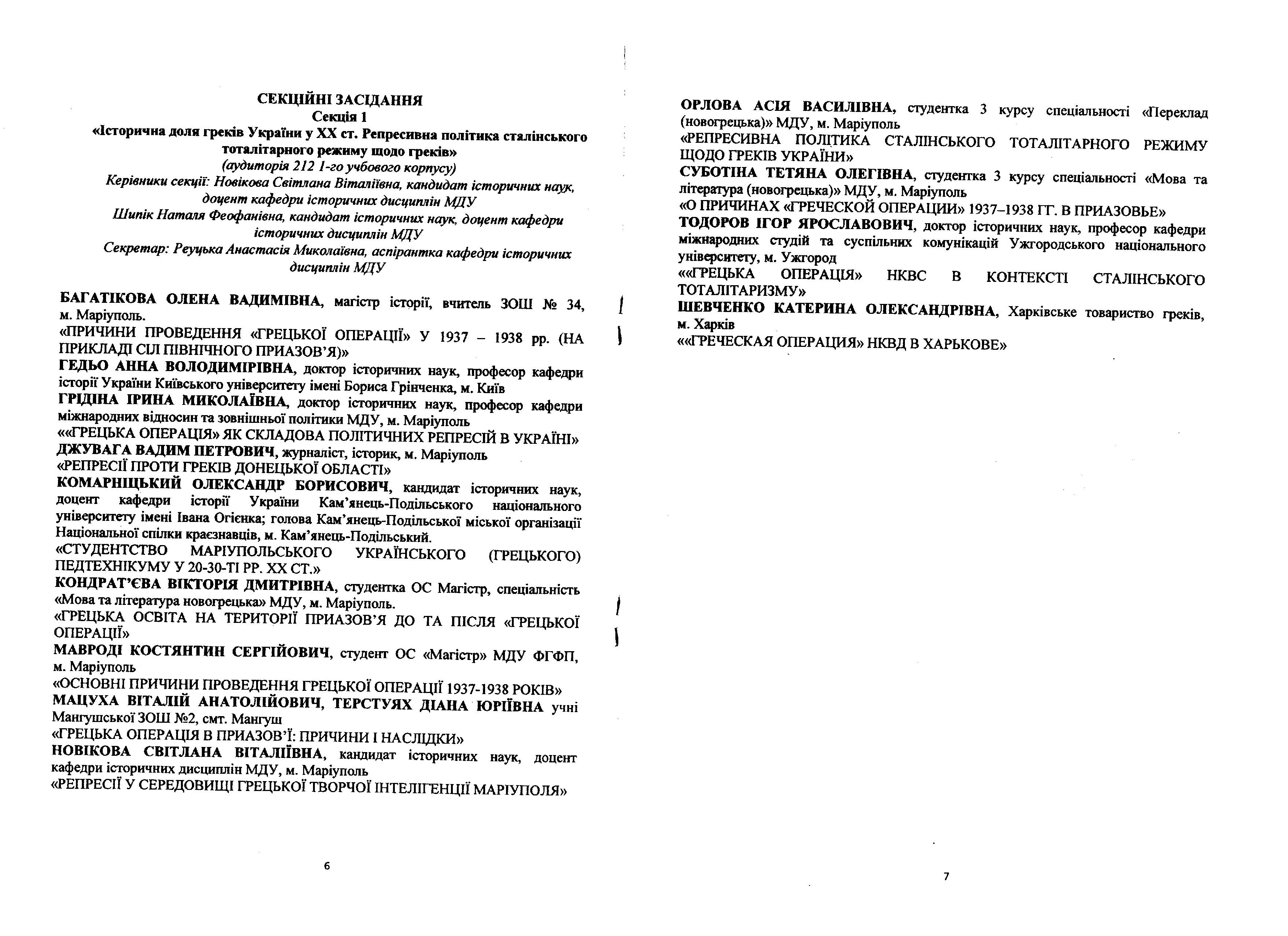 | 2788 | Трагедія греків України в історичній пам’яті українців (80-і роковини репресивної «грецької операції)», яка відбудеться 14 грудня 2017 р. на історичному факультеті МДУ. НАПРЯМ | «Грецька операція» як складова політичних репресій в Україні | Маріуполь |