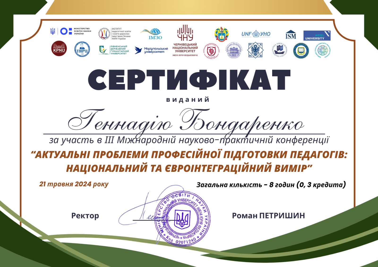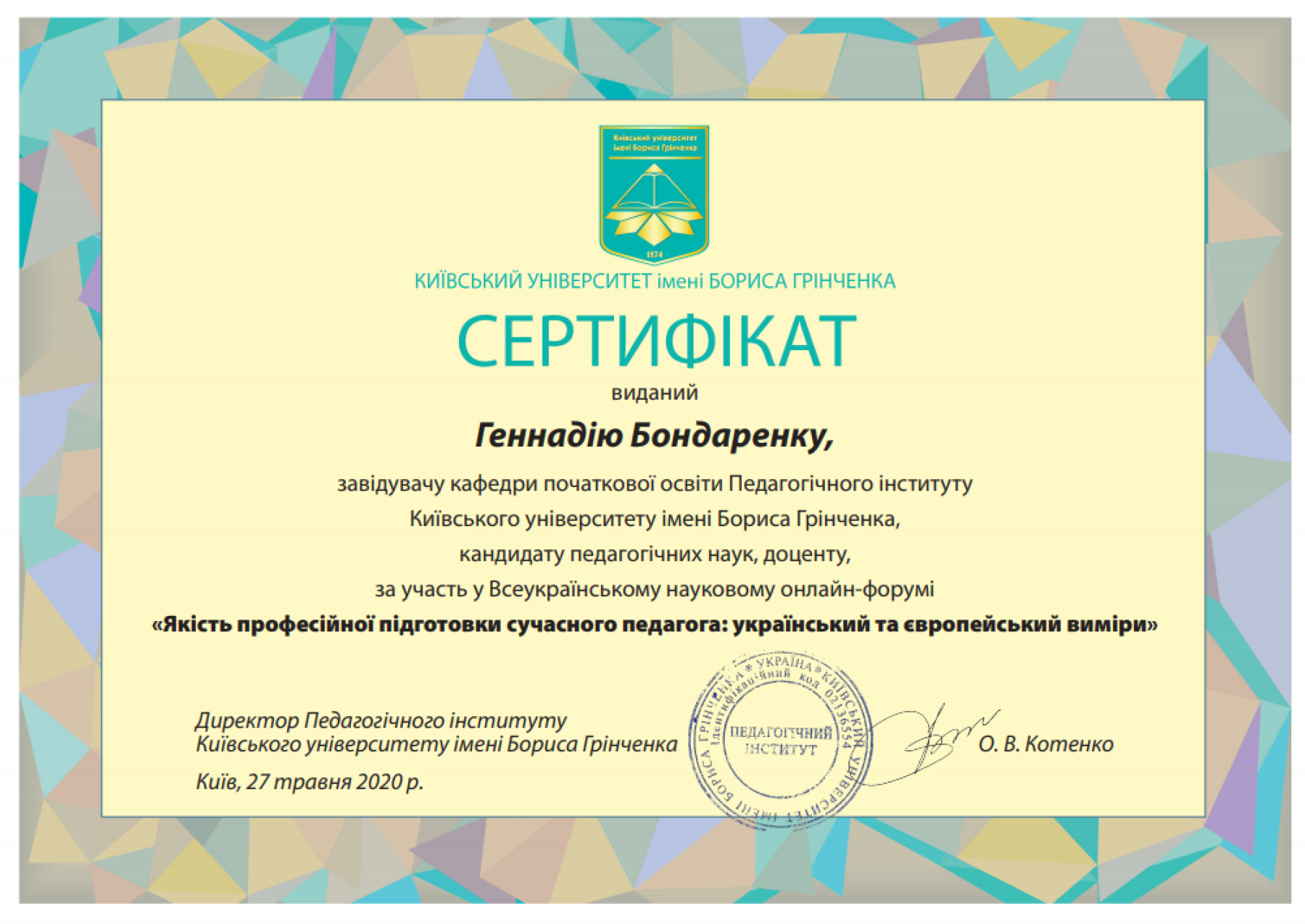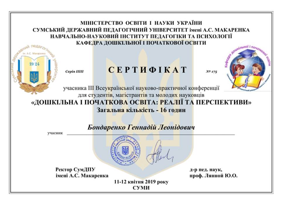 | 128 | Факультет педагогічної освіти | Кафедра початкової освіти | 118.3 | 2 | 2025 | https://www.researchgate.net/profile/Hennadii_Bondarenko |