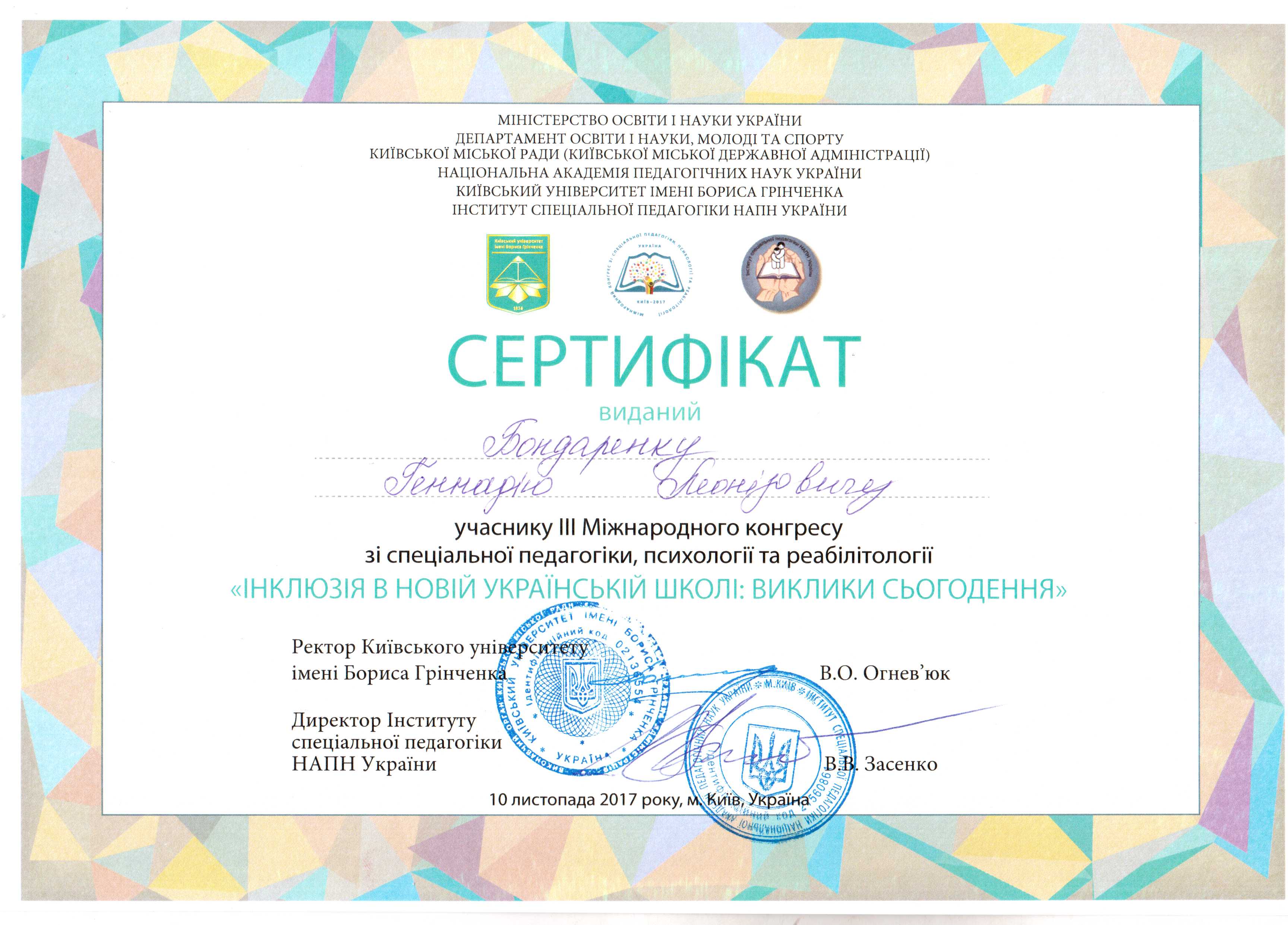 | 1248 | Інклюзія в новій українській школі: виклики сьогодення | ІІІ Міжнародний конгрес зі спеціальної педагогіки, психології та реабілітології | Київський університет імені Бориса Грінченка | 10.11.2017 00:00 | 10 |