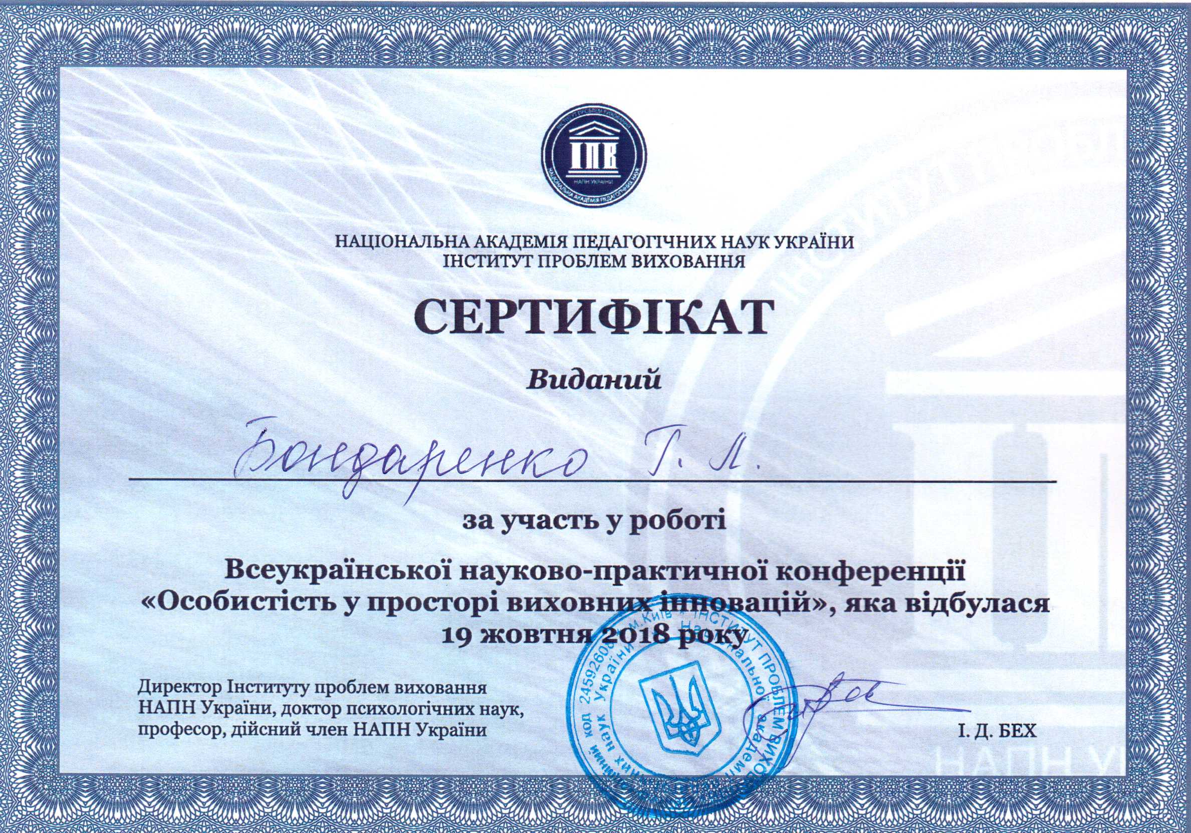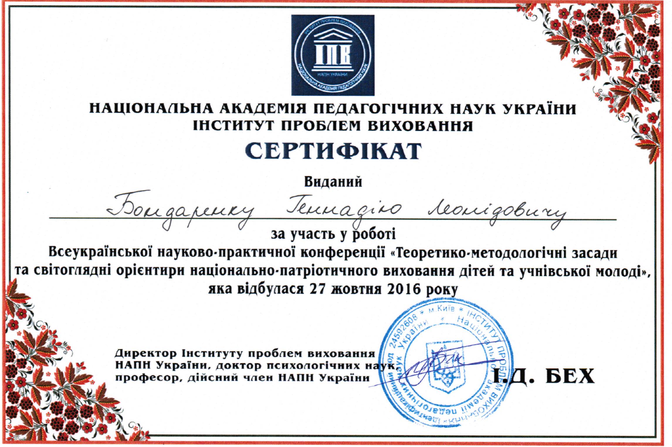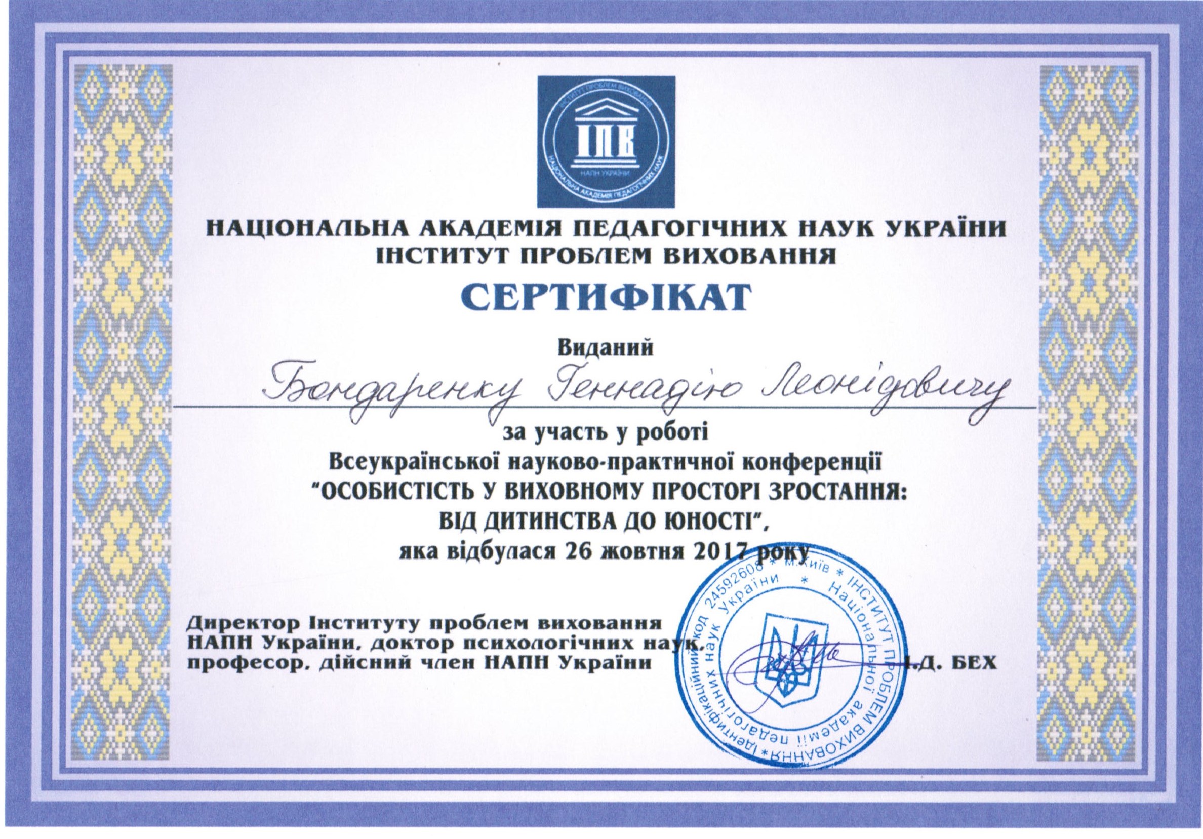 | 2351 | Всеукраїнська науково-практична конференція "Особистість у виховному просторі зростання: від дитинства до юності" | Формування ціннісних орієнтацій майбутніх педагогів засобами педагогічної риторики | м. Київ, Президія Національної академії педагогічних наук України |