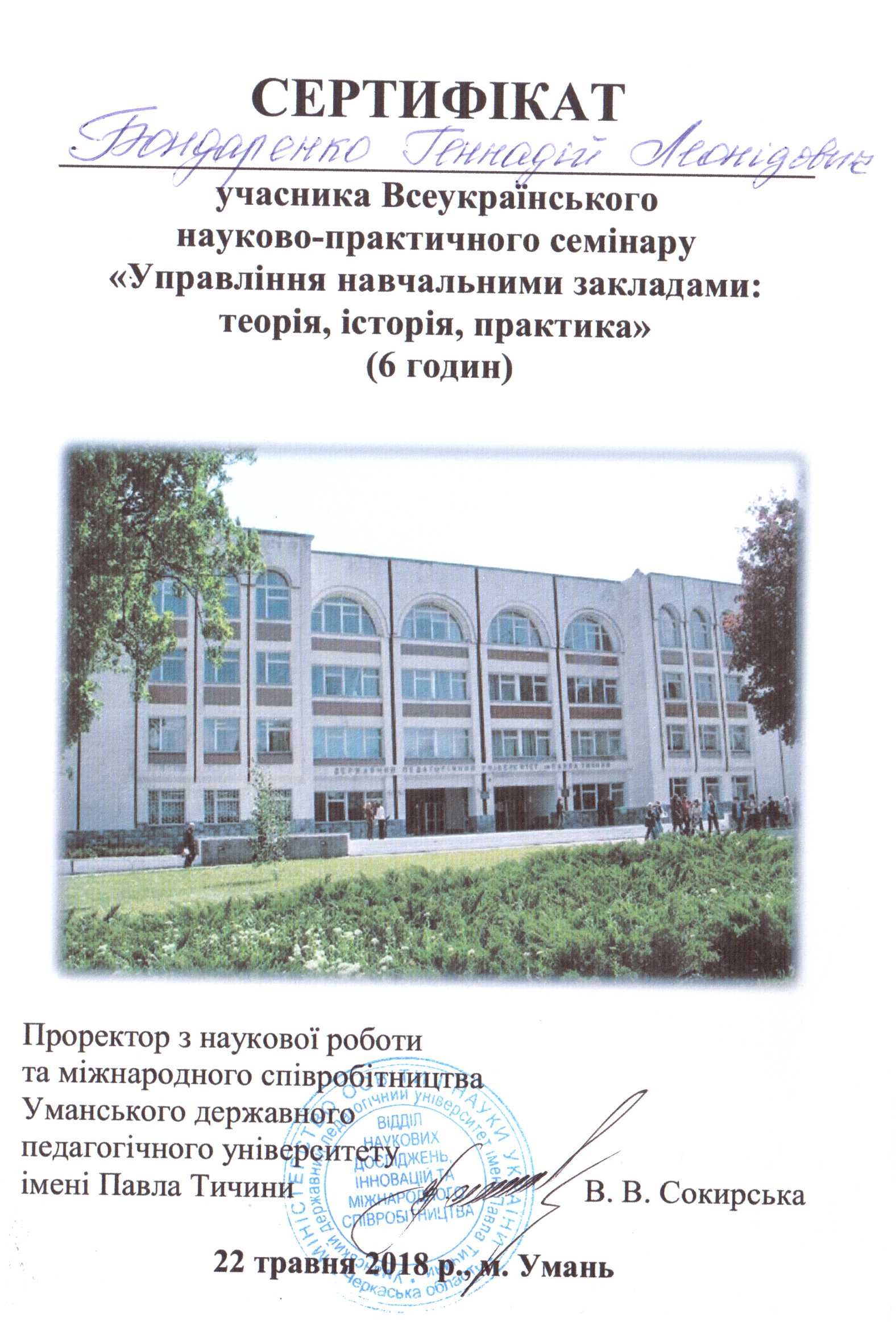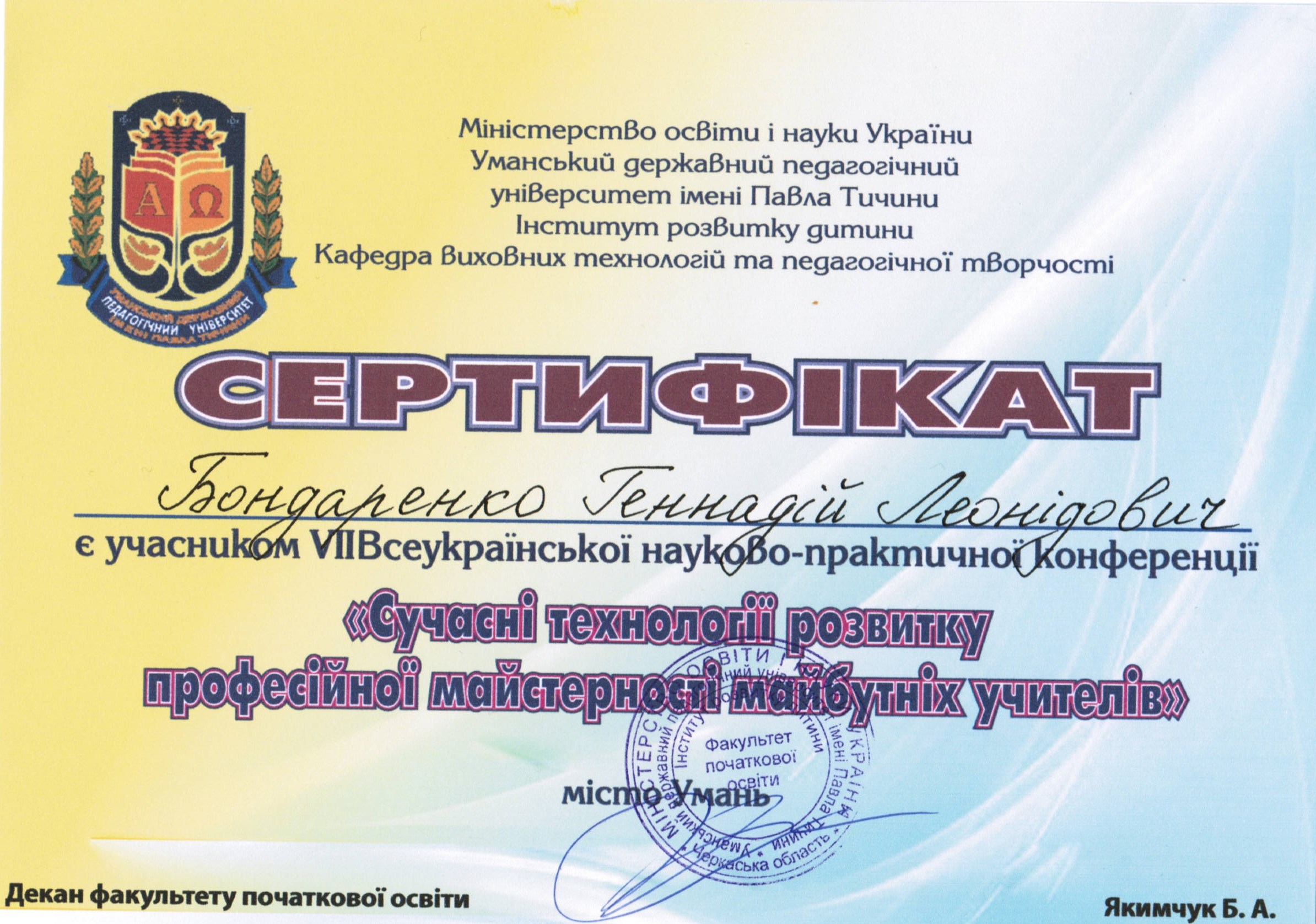 | 3305 | Всеукраїнський науково-практичний семінар "Управління навчальними закладами: теорія, історія, практика" | Особливості підготовки менеджера систем якості в початковій освіті | м. Умань, Уманський державний педагогічний університет |