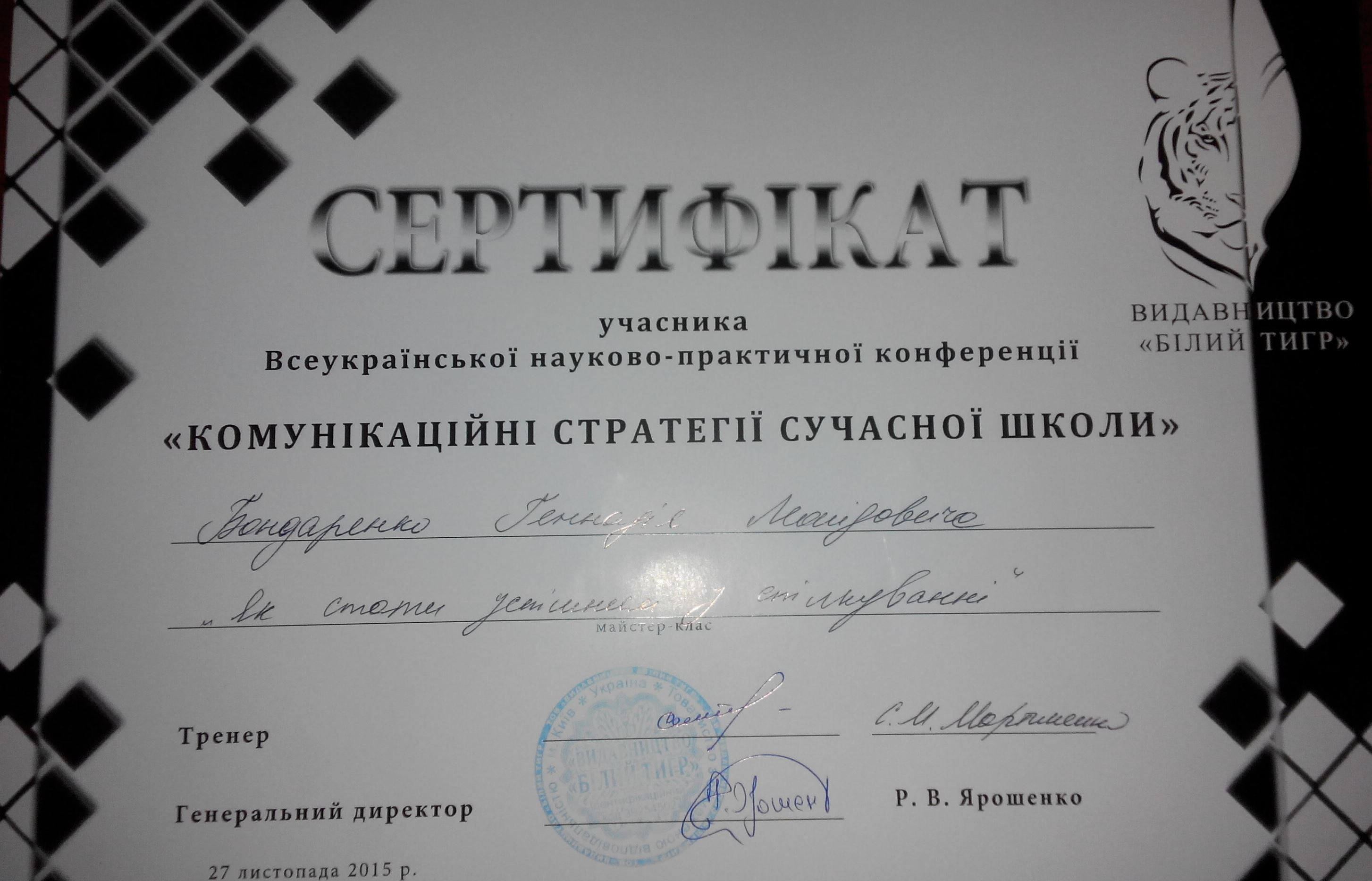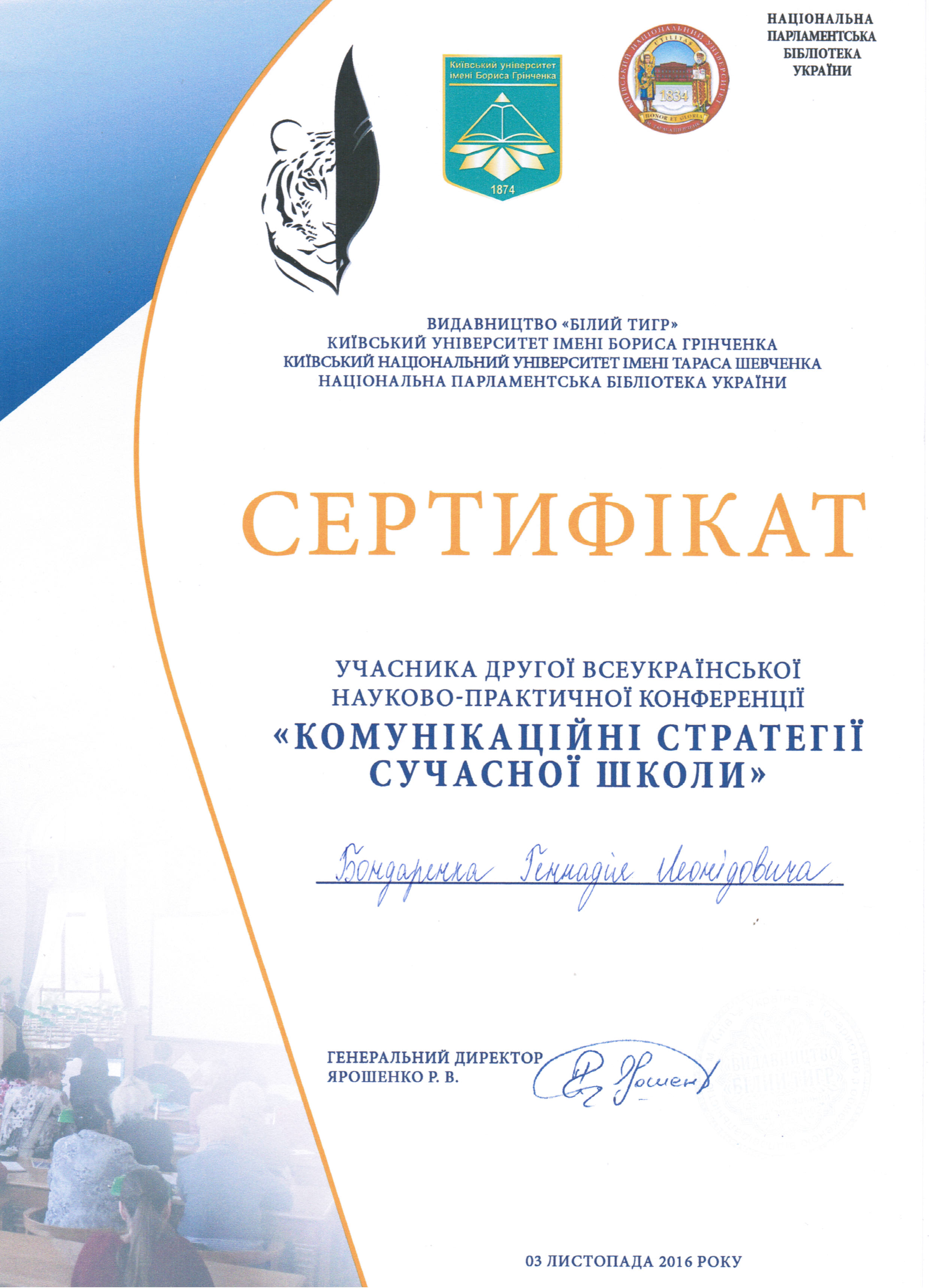 | 63 | Друга Всеукраїнська науково-практична конференці 'Комунікаційні стратегії сучасної школи' | Комунікативні стратегії і тактики переконування в мовленнєво-риторичній діяльності вчителя початкової школи | Київ, Парламентська бібліотека |