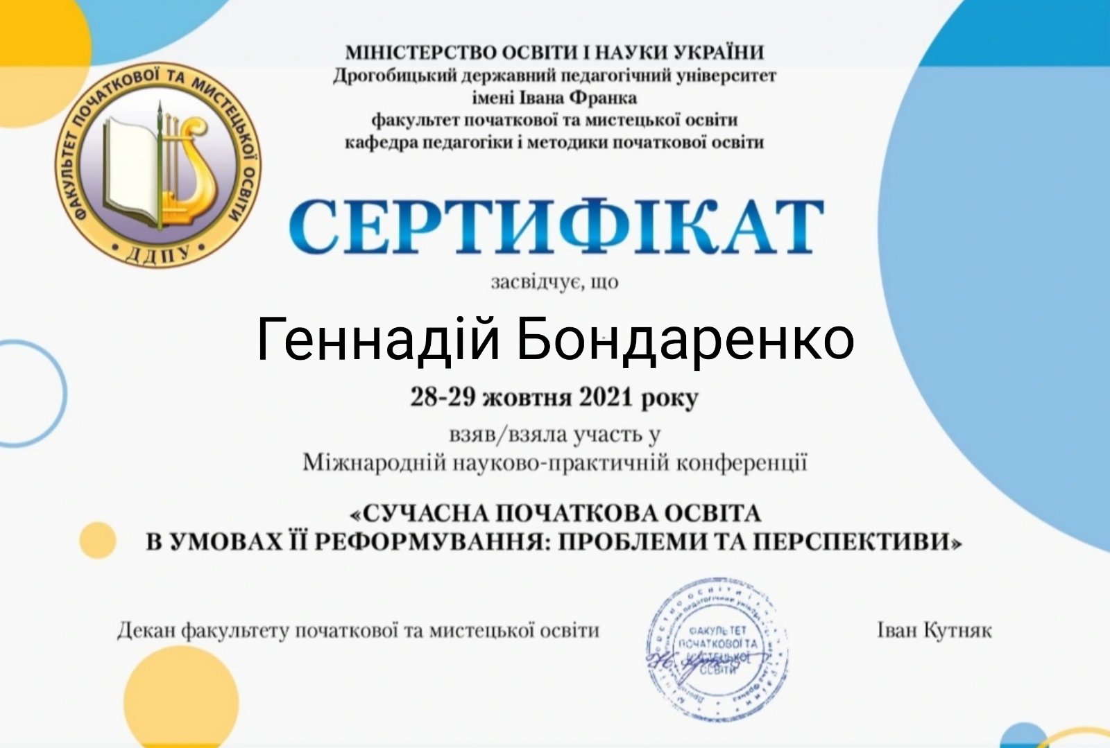 | 166 | Кафедра початкової освіти | AAZ-7825-2021 | 5 | 2 | 2021 | https://publons.com/researcher/4693410/hennadii-gennady-bondarenko/ |