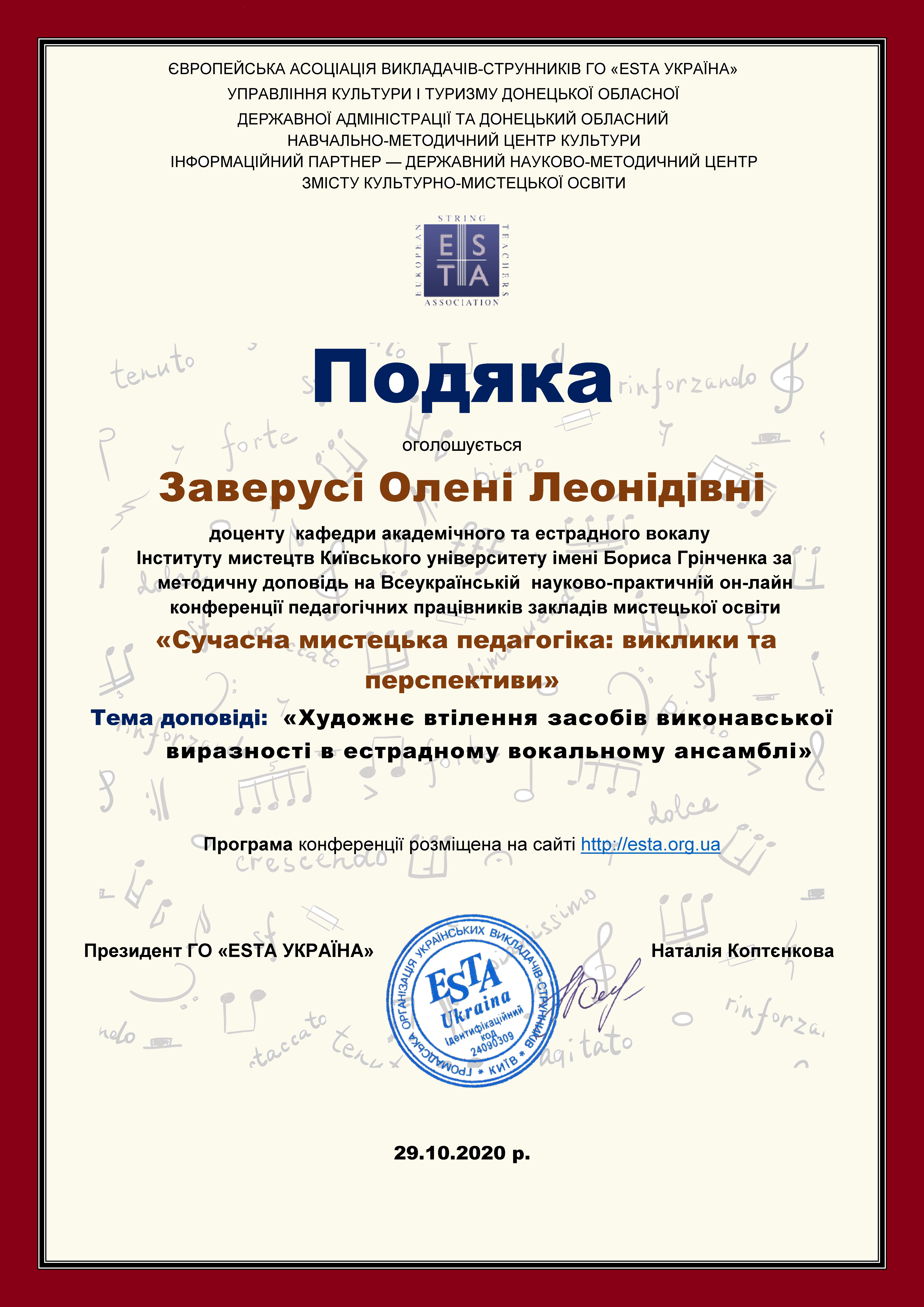 | 84 | Факультет музичного мистецтва і хореографії | Кафедра академічного та естрадного вокалу | Всеукраїнські конкурси | V Всеукраїнський вокальний фестиваль - конкурс «Prodis Vocal Fest» | Україна, Київ | 2024 | Заверуха.pdf |