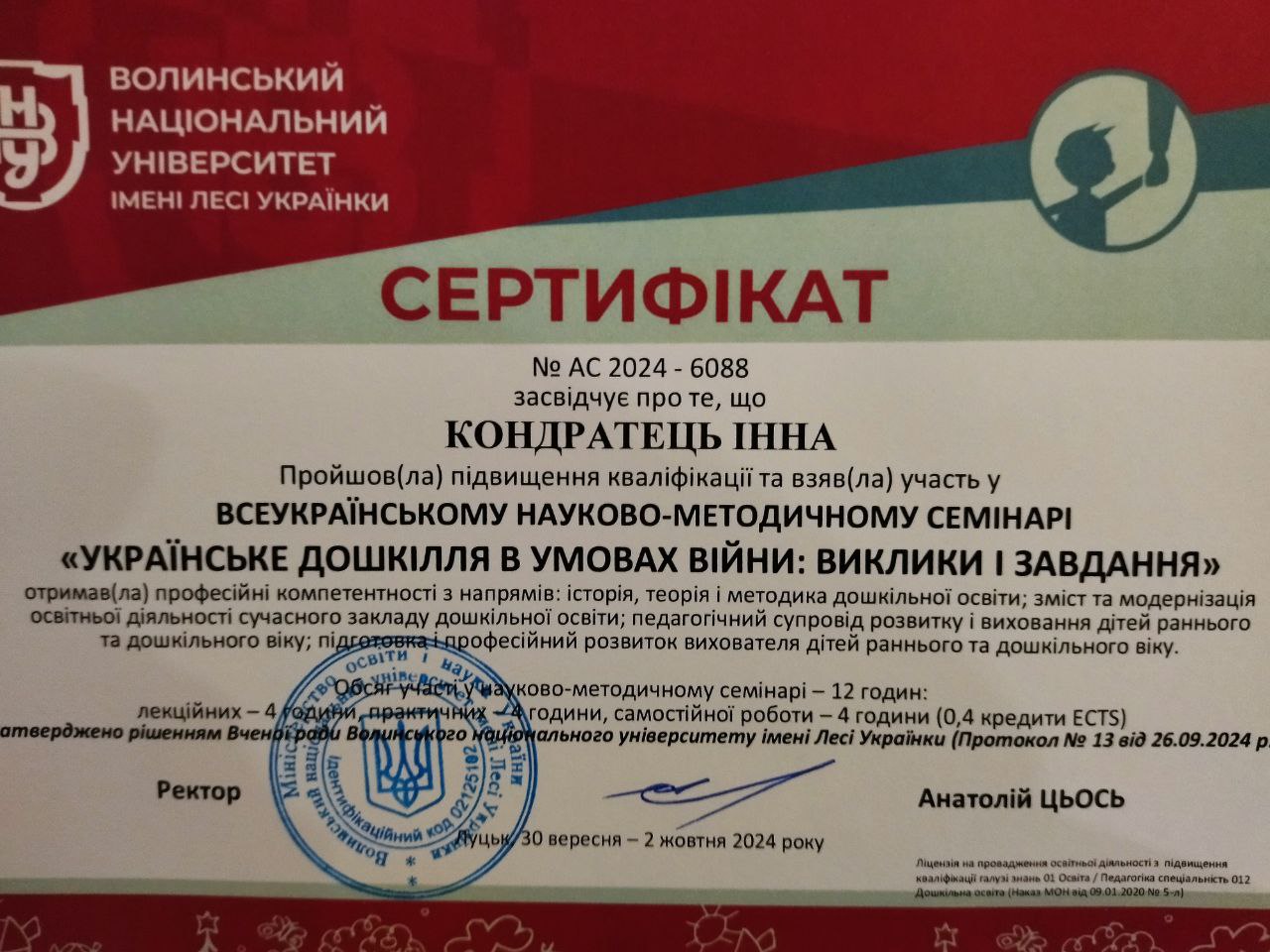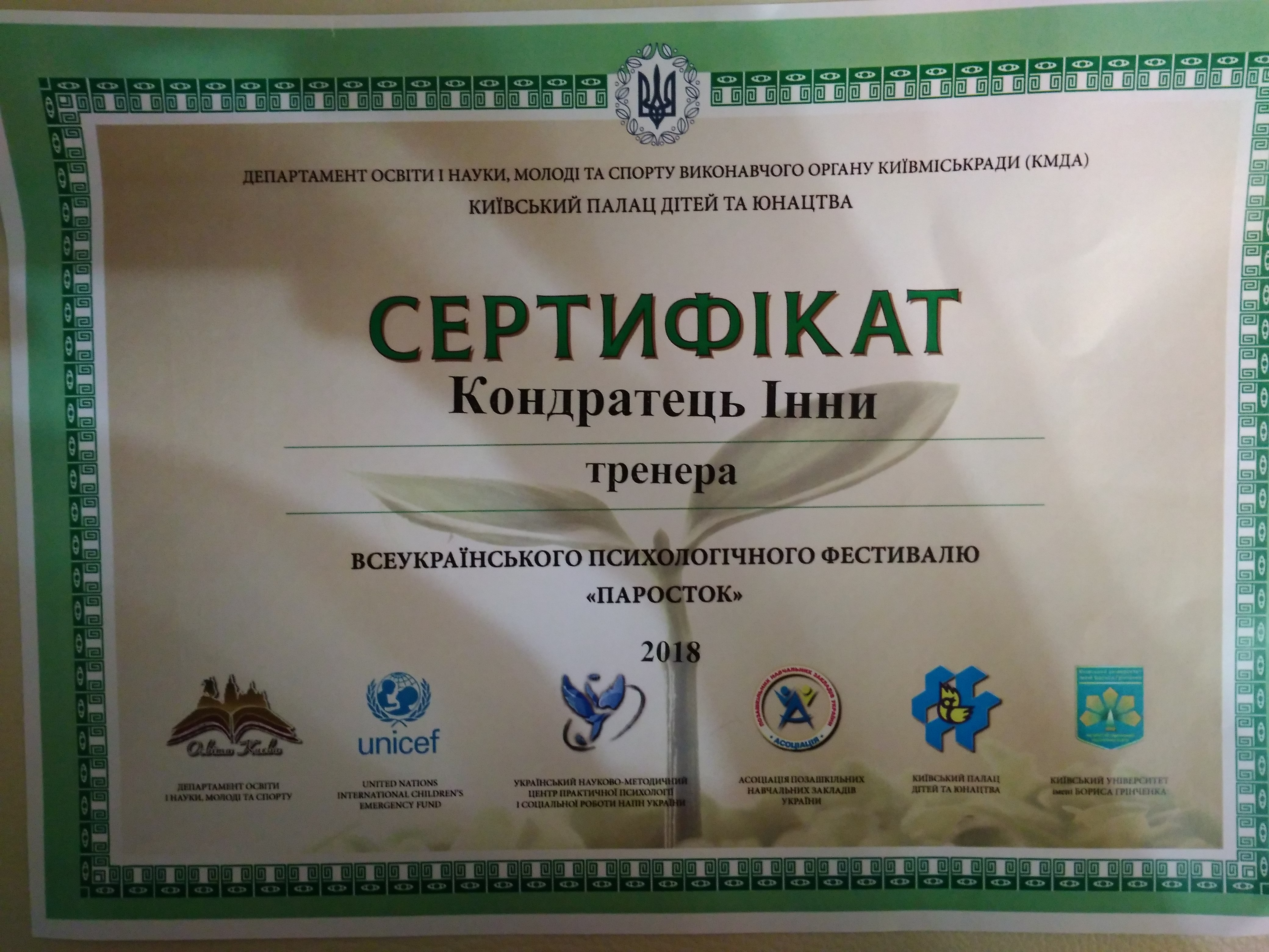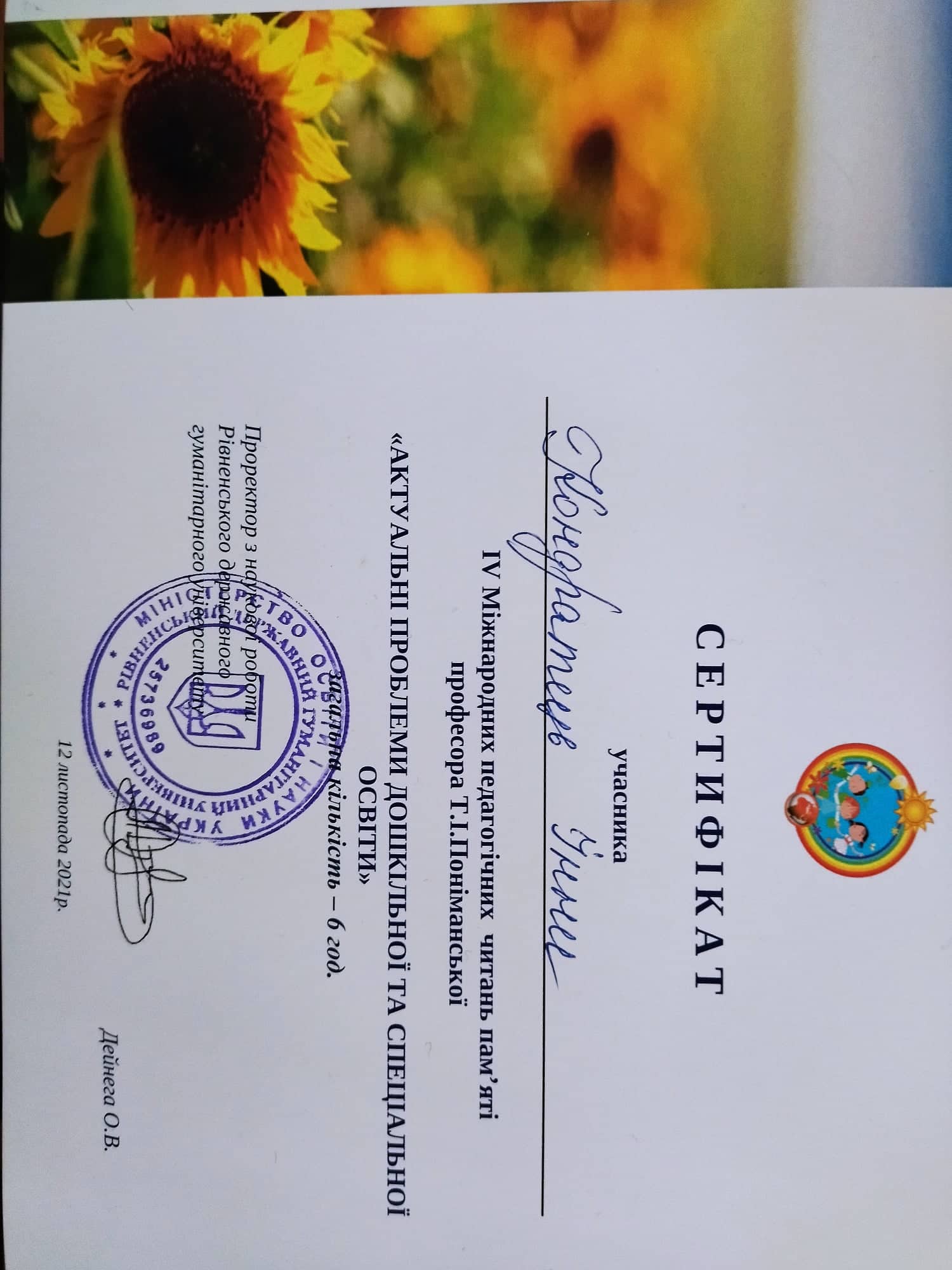 | 9582 | Всеукраїнський круглий стіл «Сучасний заклад дошкільної освіти: лідерство, диджиталізація, майбутній капітал» | учасник | м.Київ |