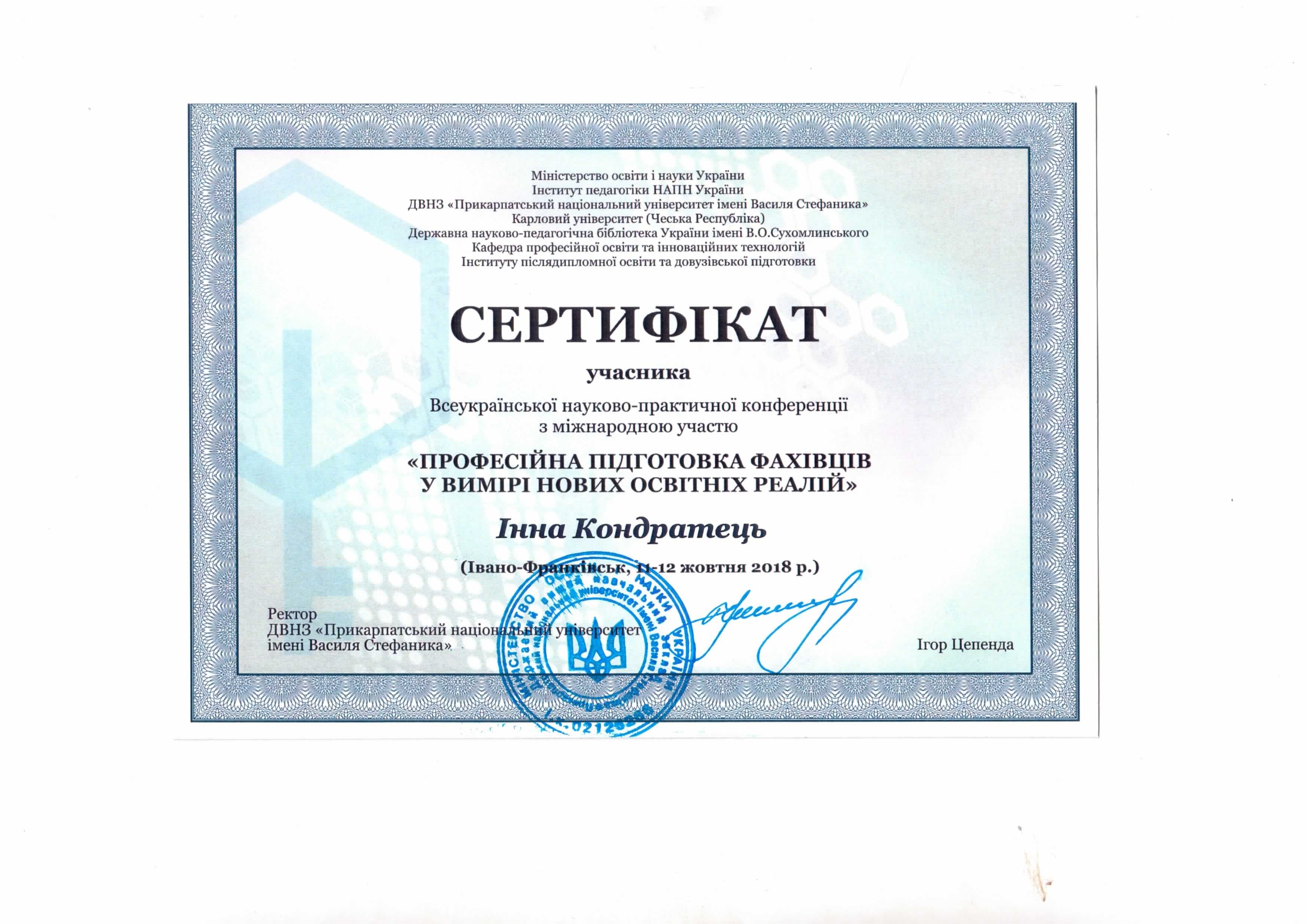 | 3340 | Професійна підготовка фахівців у вимірі нових освітніх реалій | Розвиток рефлексійної культури педагогів закладів дошкільної освіти у системі післядипломної освіти. | Івано-Франківськ |