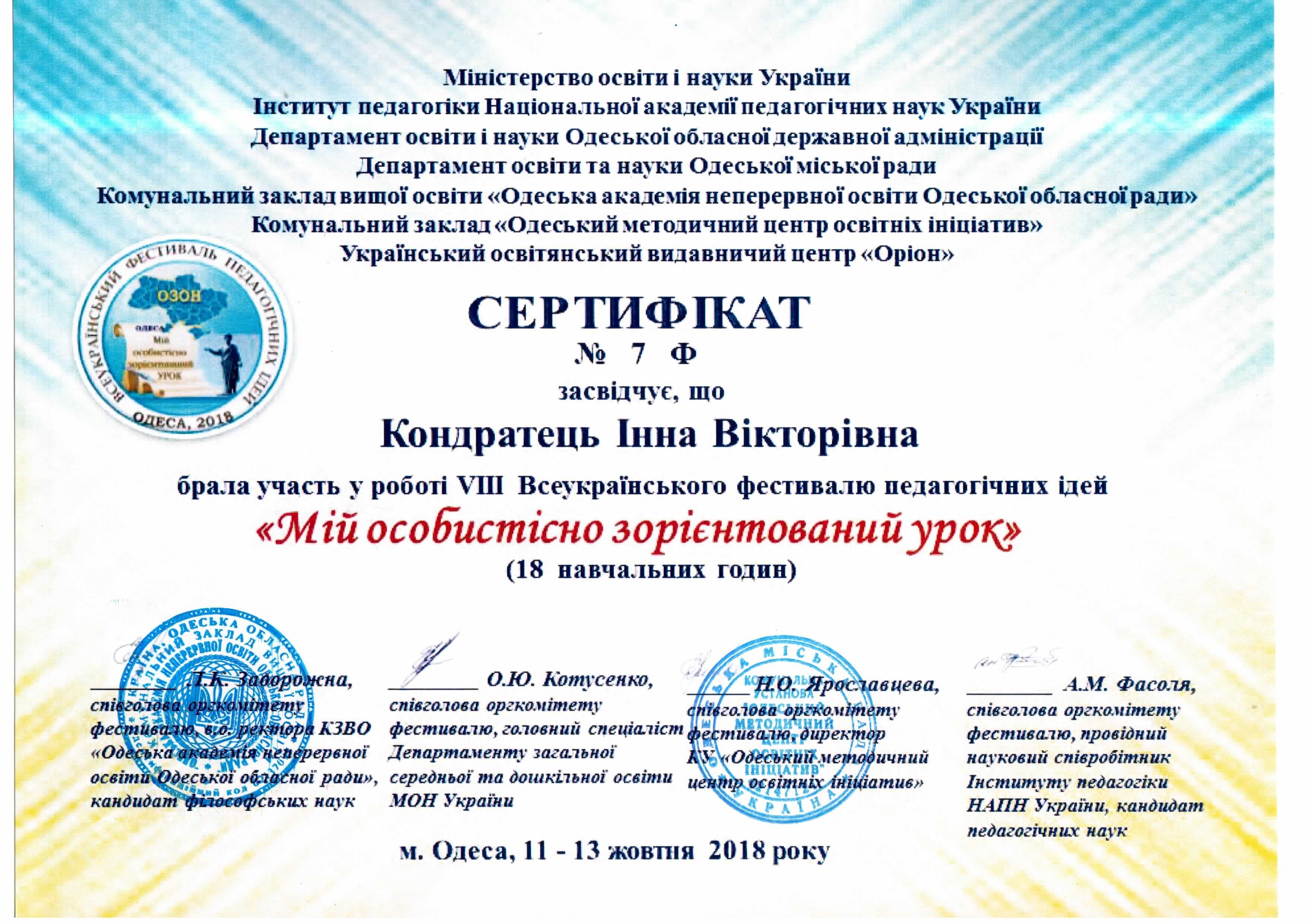| 3838 | Фестиваль педагогічних ідей \ | Методичний аукціон як засіб популяризації педагогічного досвіду | Одеса |