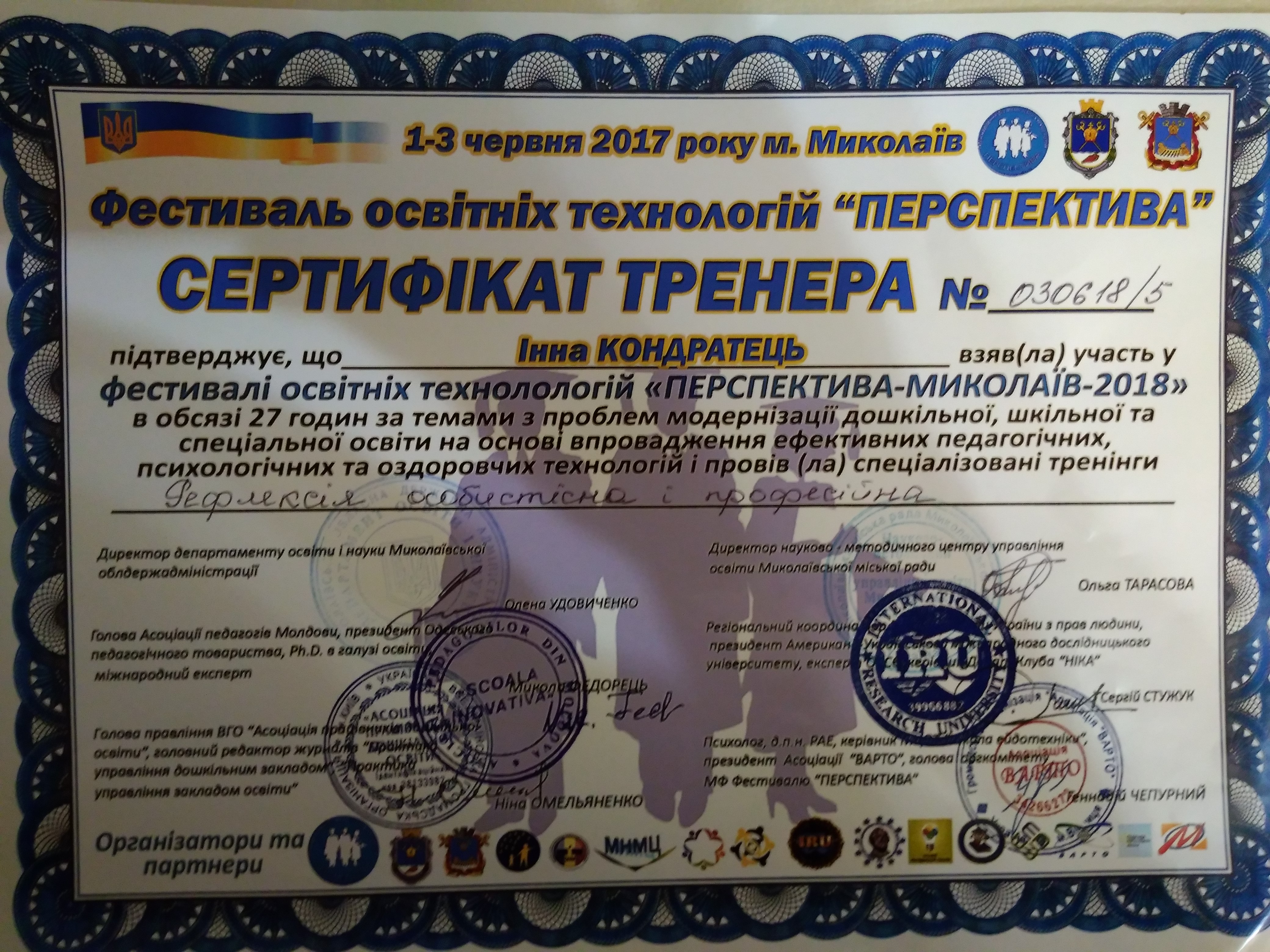 | 3867 | Фестиваль освітніх технологій "Перспектива" | Рефлексія особистісна і професійна. | Миколаїв |