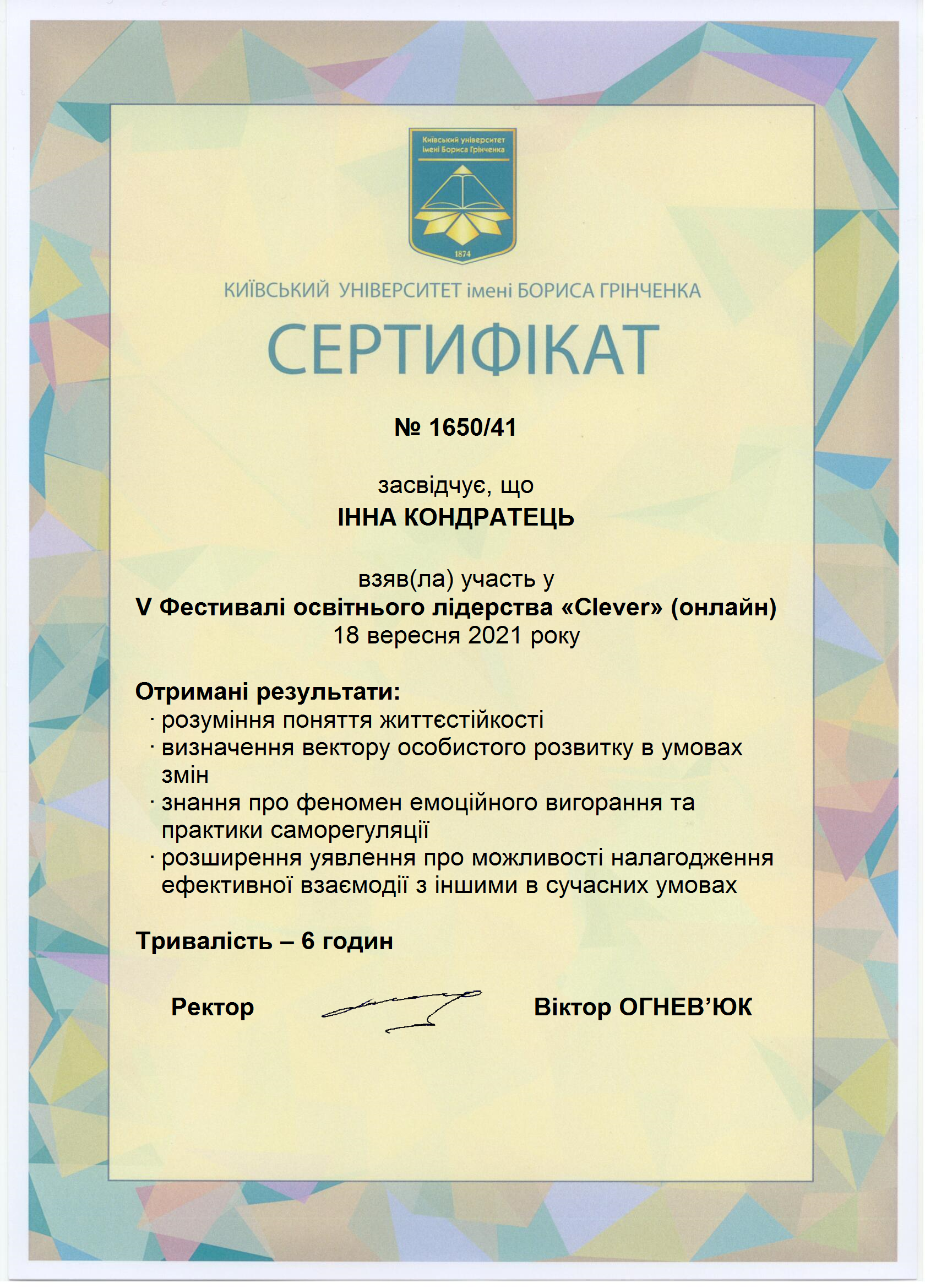 | 7572 | V Фестиваль освітнього лідерства "Clever" | - | Київ |