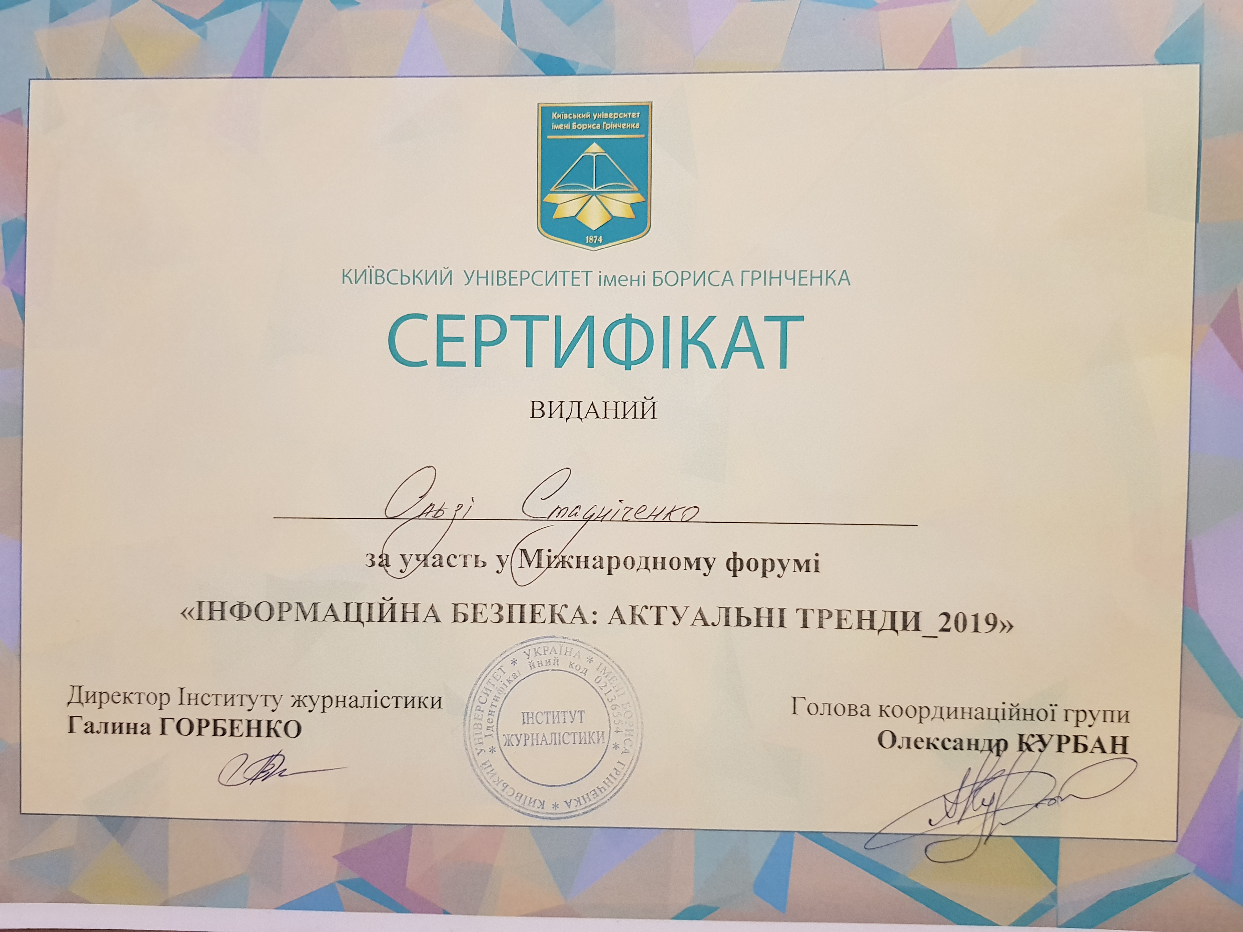 | 4995 | Інформаційна безпека: актуальні тренди 2019. | учасник дискусії | Київ |
