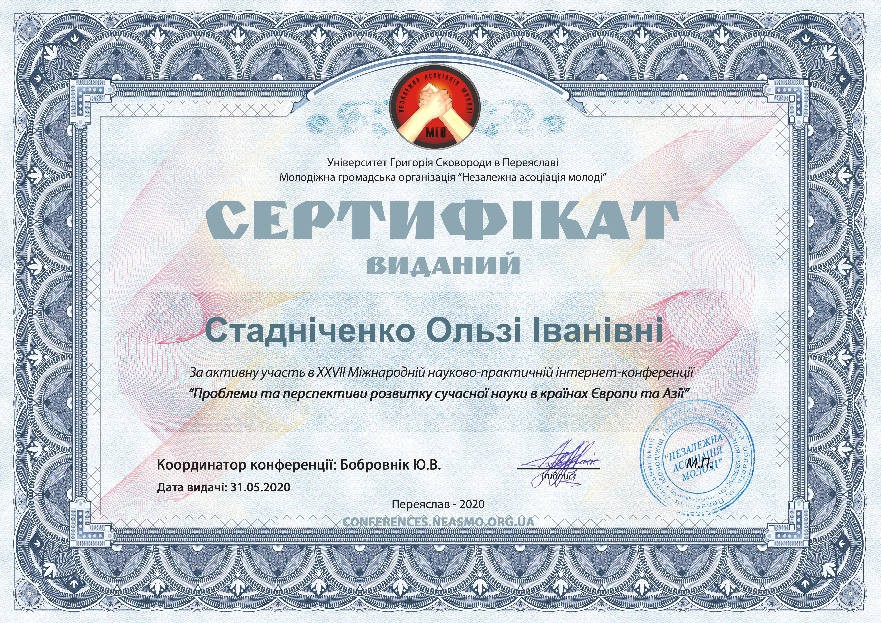 | 5403 | ХХVІІ Міжнародної науково-практичної інтернет-конференції «Проблеми та перспективи розвитку сучасної науки в країнах Європи та Азії» | КОМУНІКАЦІЙНІ ПРОЦЕСИ СУЧАСНОСТІ І НАЦІОНАЛЬНА САМОІДЕНТИФІКАЦІЯ: ВЗАЄМОВПЛИВИ | Переяслав |