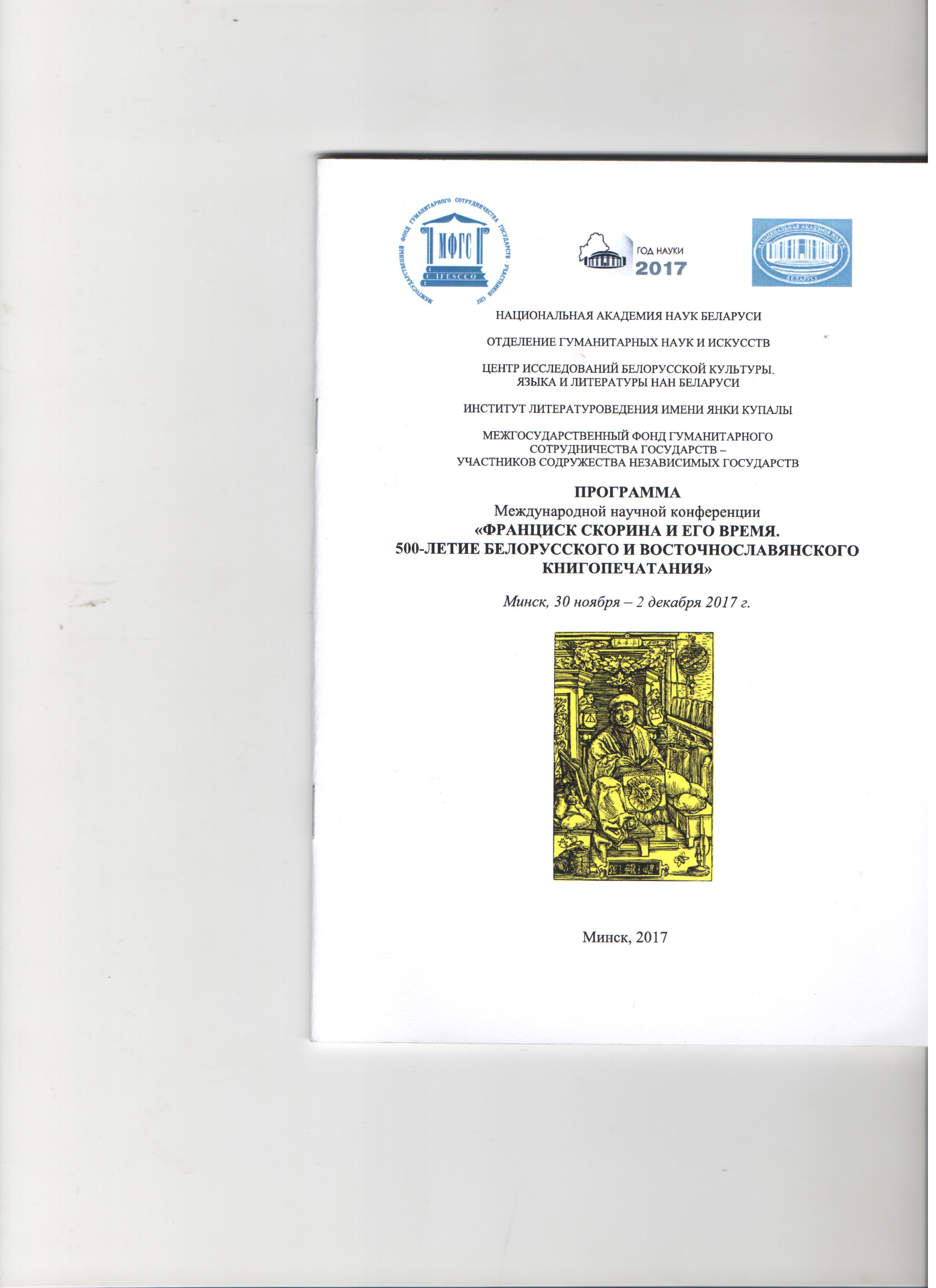 | 2507 | Франциск Скорина и его время. 500-летие белорусского и восточнославянского книгопечатания | Українські письменники-романтики - перекладачі Біблії | м. Мінськ, Білорусь |