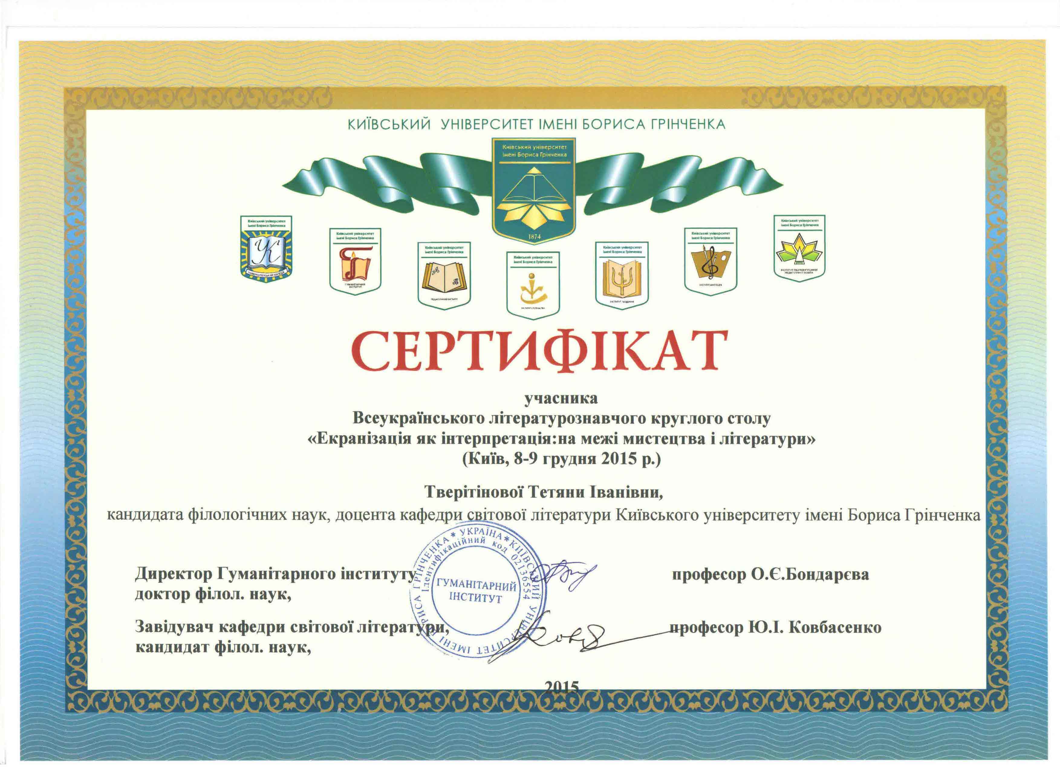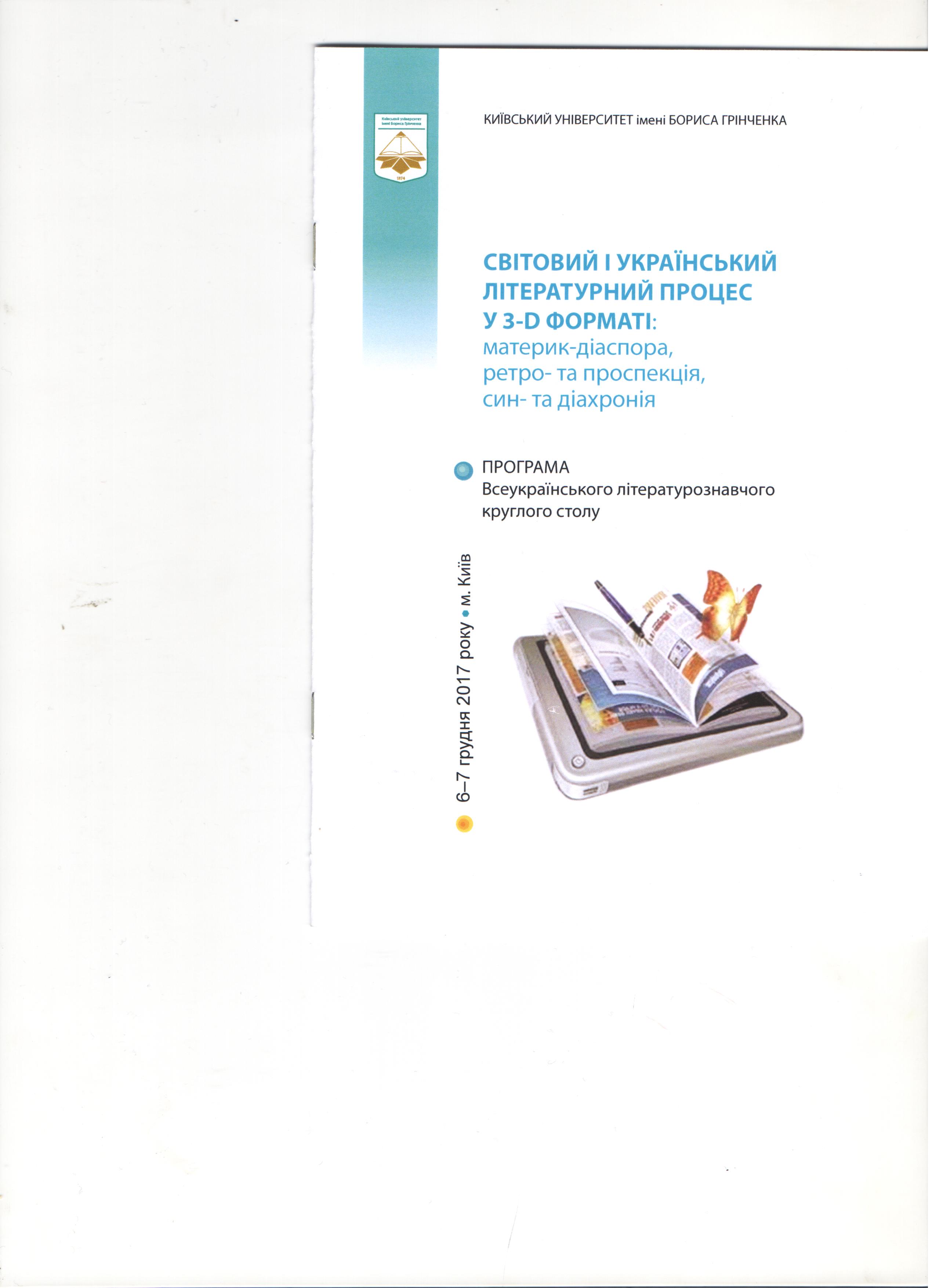 | 9988 | Всеукраїнський літературознавчий круглий стіл (з міжнародною участю) "Грінченко-енциклопедист" | Б. Грінченко і архів В. Тарнавського | Київський університет імені Бориса Грінченка | document.pdf | |