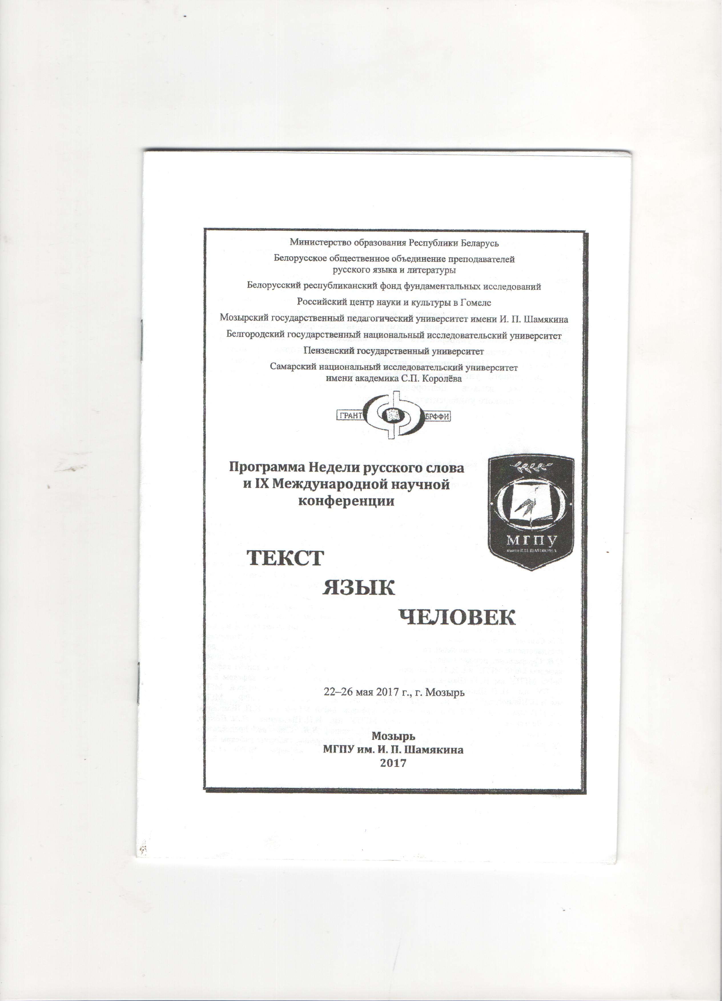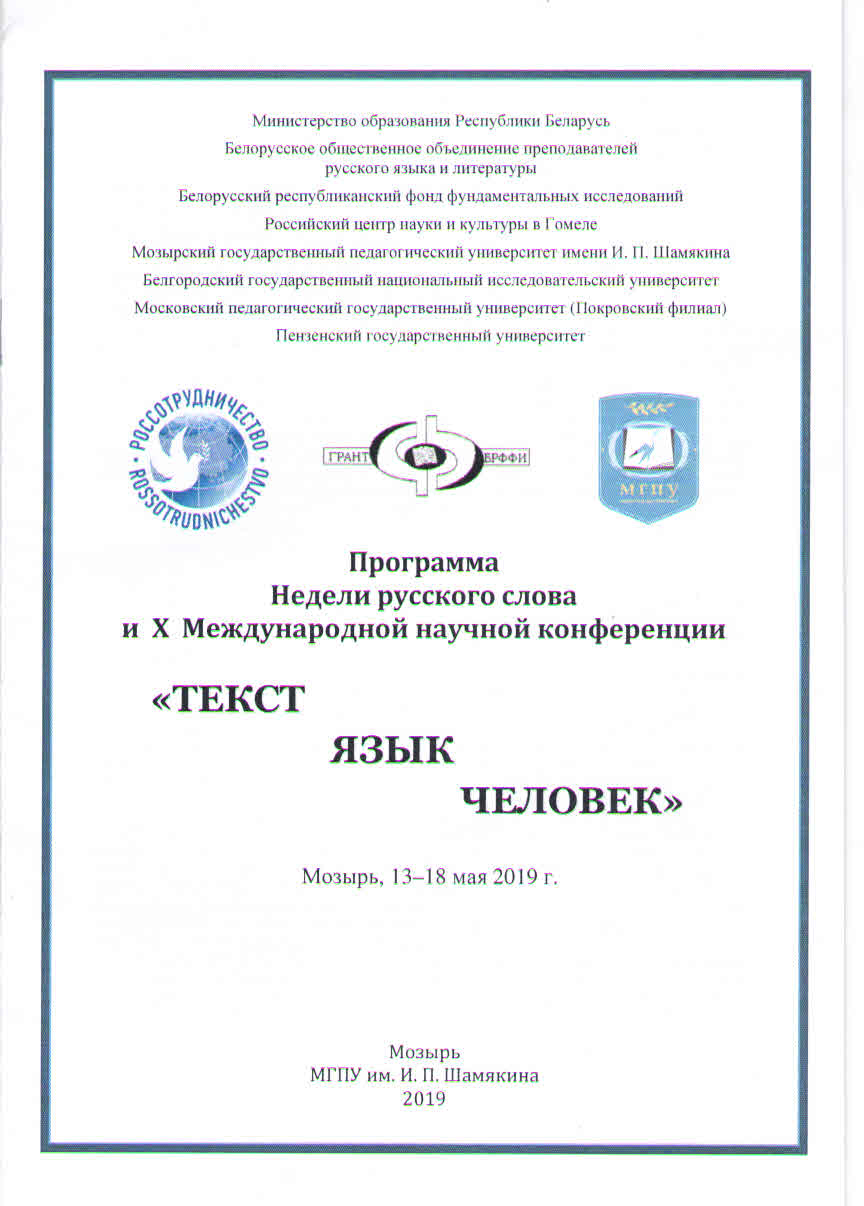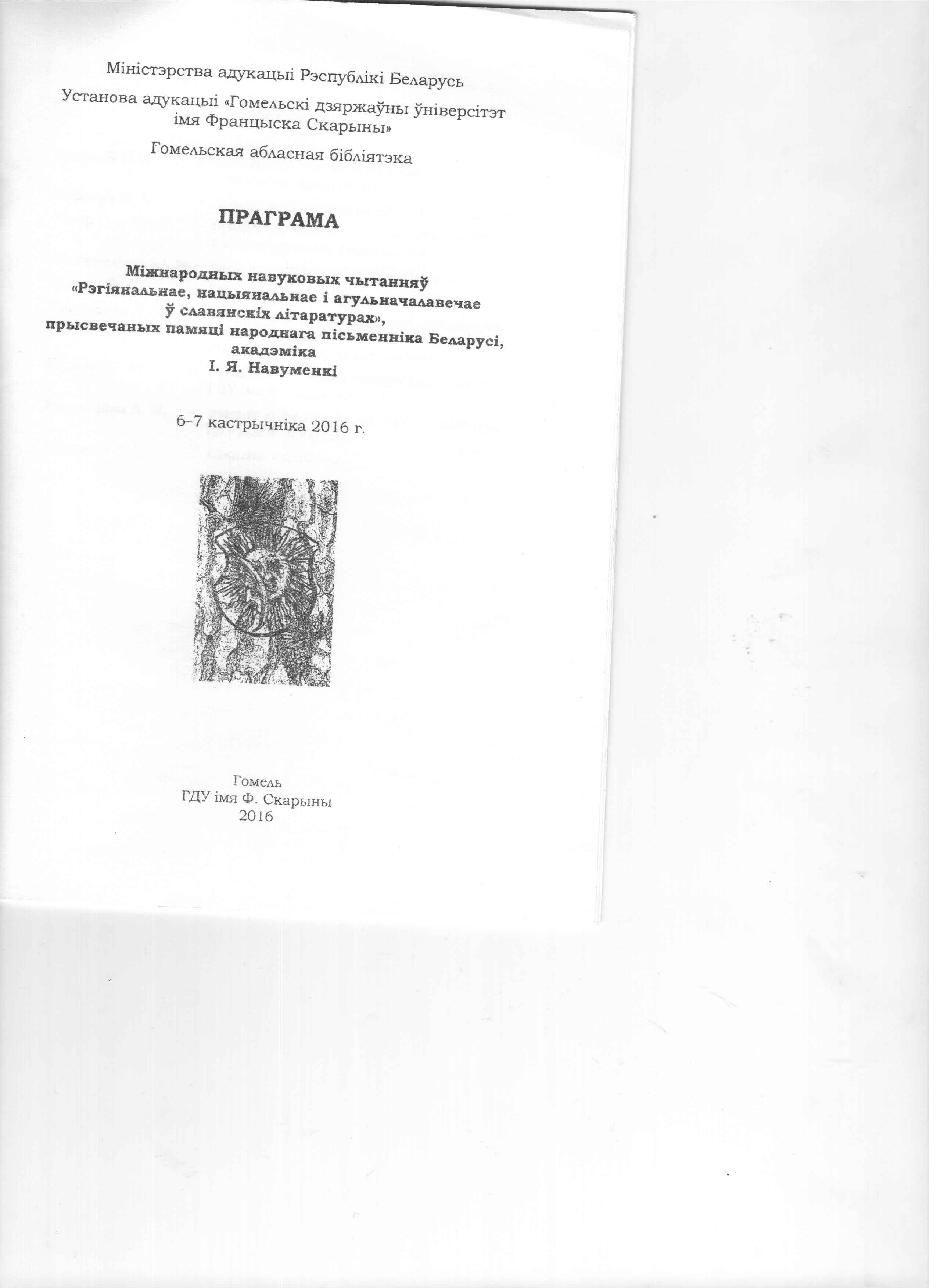 | 754 | 'Рэгіянальнае, нацыянальнае і агульначалавечае у славянскіх літаратурах', прысвечаных памяці народнага пісьменніка Беларусі, акадэміка І.Я. Навуменкі | Судьба 'Северного сфинкса': Л.Н. Толстой и В.Г. Короленко о старце Федоре Кузьмиче | М. Гомель, Гомельський державний університет ім. Ф. Скорини (Білорусь) |