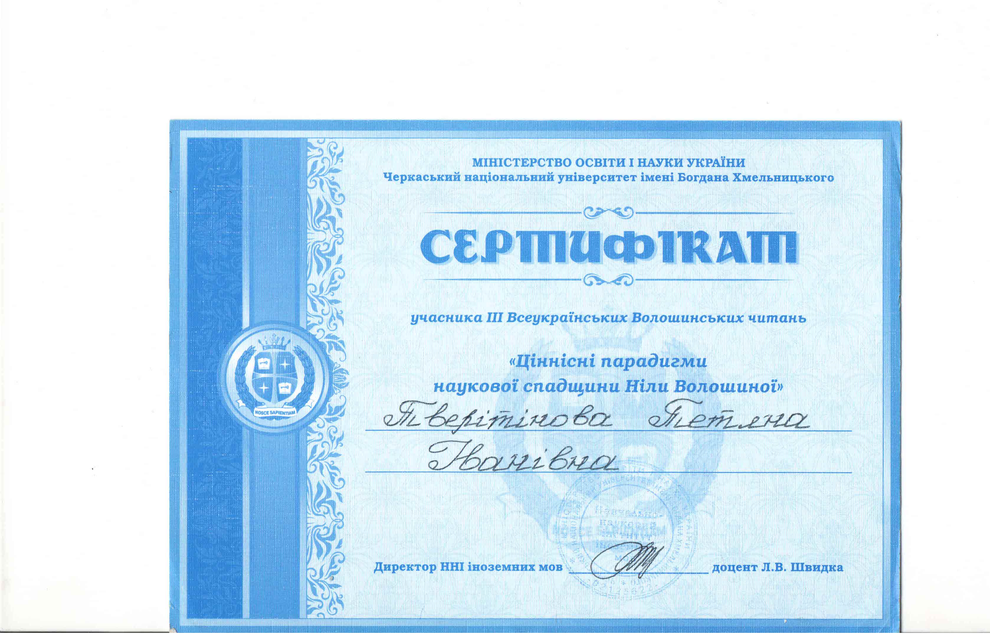 | 752 | ІІІ Всеукраїнські Волошинські читання 'Ціннісні парадигми наукової спадщини Ніли Волошиної' | Класика крізь призму сучасності: компаративний підхід до вивчення творів російської класичної літератури | М. Черкаси, Черкаський національний університет імені Б. Хмельницького |