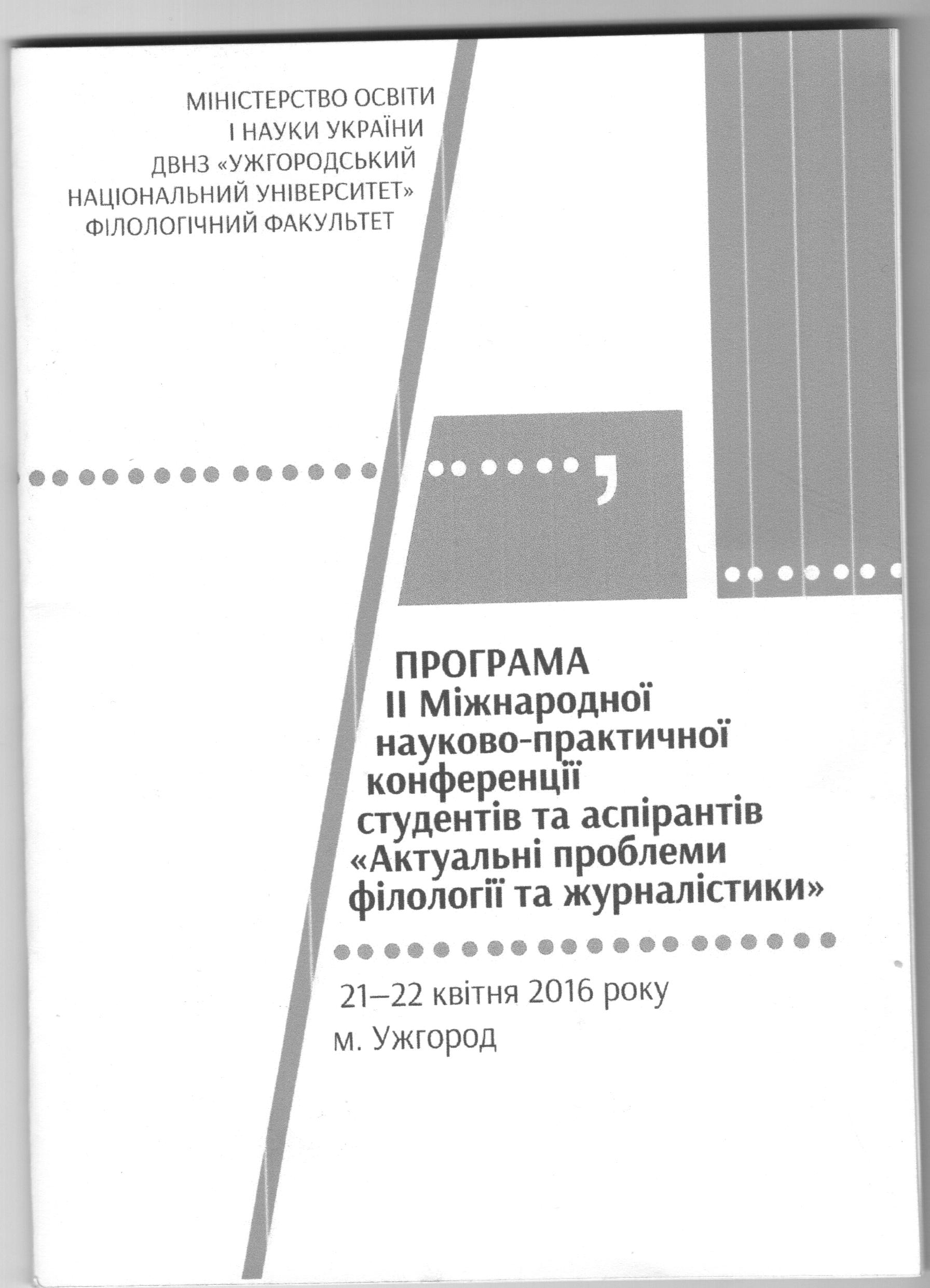 | 756 | Актуальні проблеми філології та журналістики | Рецепція явищ світової літератури | Ужгородський національний університет |