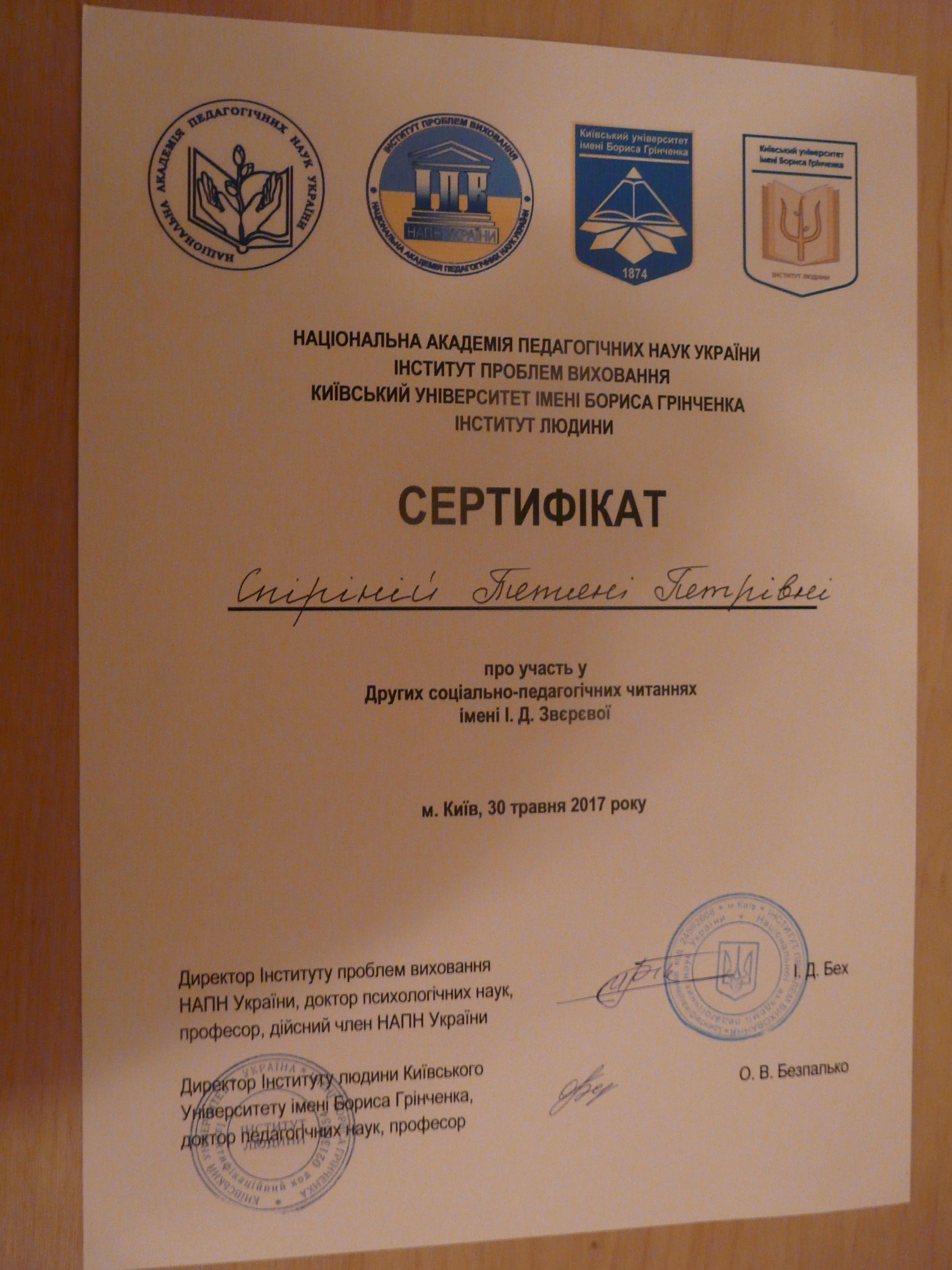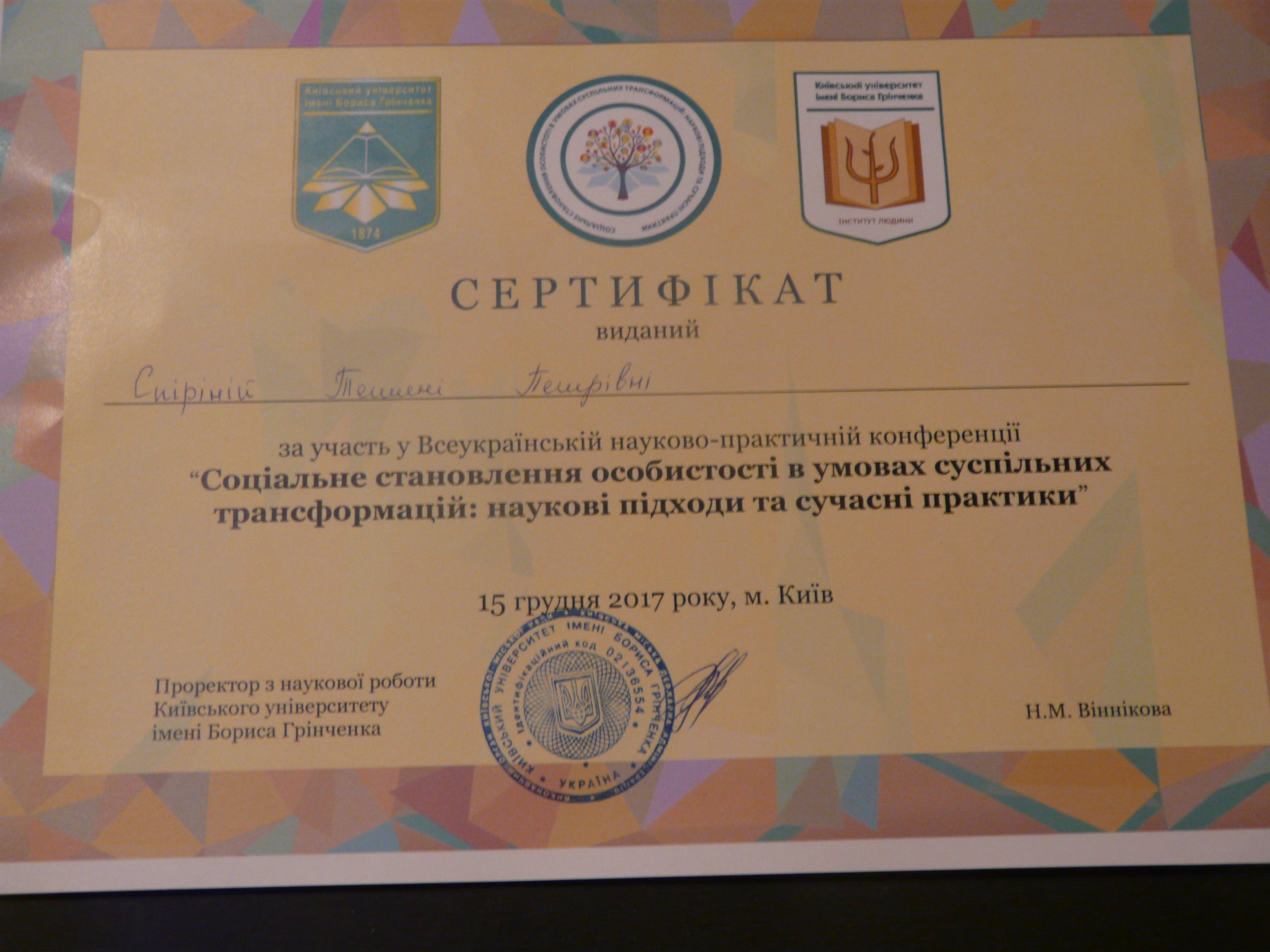 | 2165 | ІІІ Міжнародний конгрес зі спеціальної педагогіки, психології та реабілітології “ Інклюзія в новій українській школі: виклики сьогодення” | Етика соціально-педагогічної діяльності з дітьми з особливостями психофізичного розвитку | Київ |