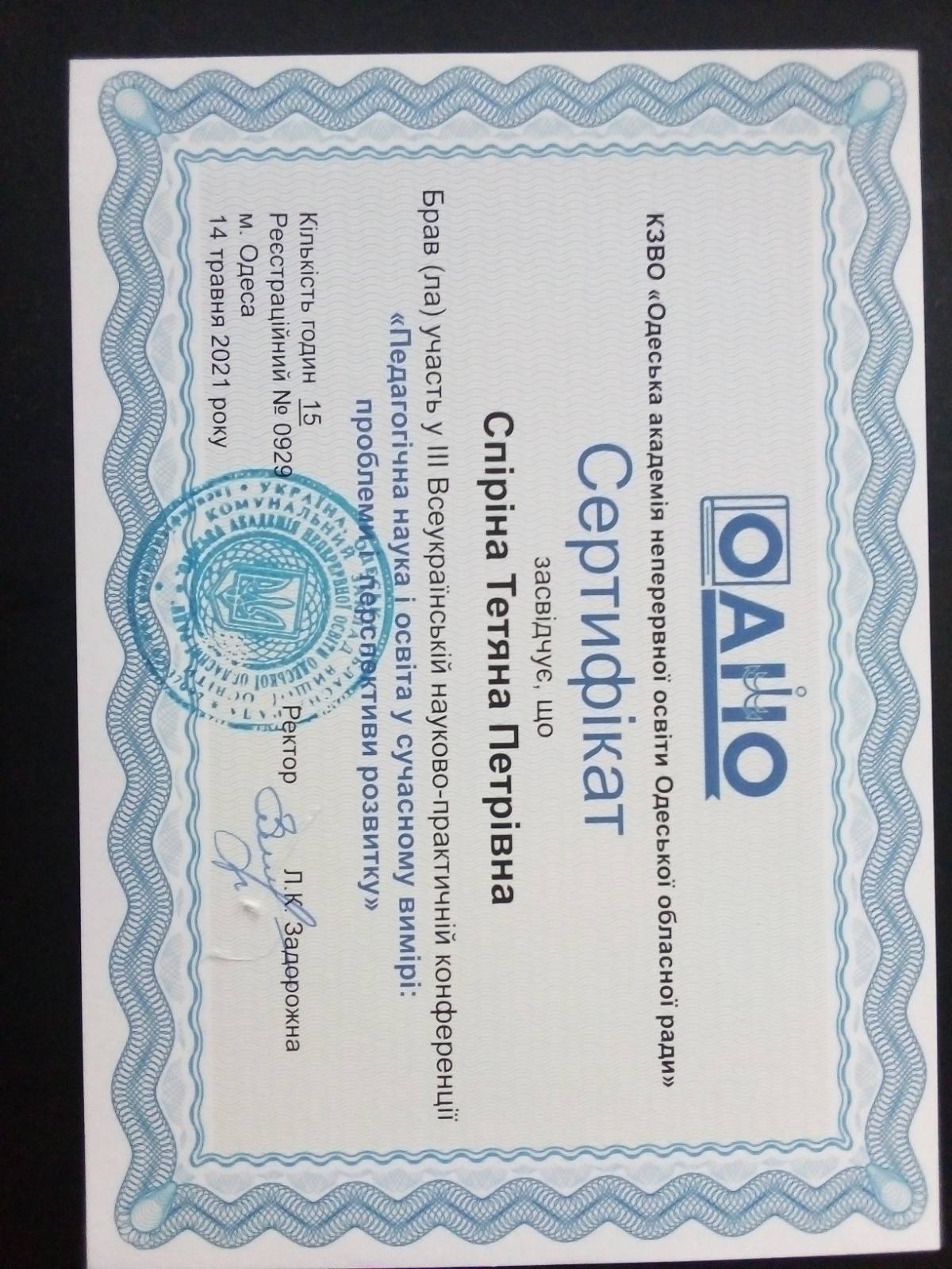 | 6836 | Педагогічна наука і освіта у сучасному вимірі: проблеми та перспективи розвитку | Моделювання професійної діяльності викладача вищої шкли в умовах змішаного навчання | Одеса |