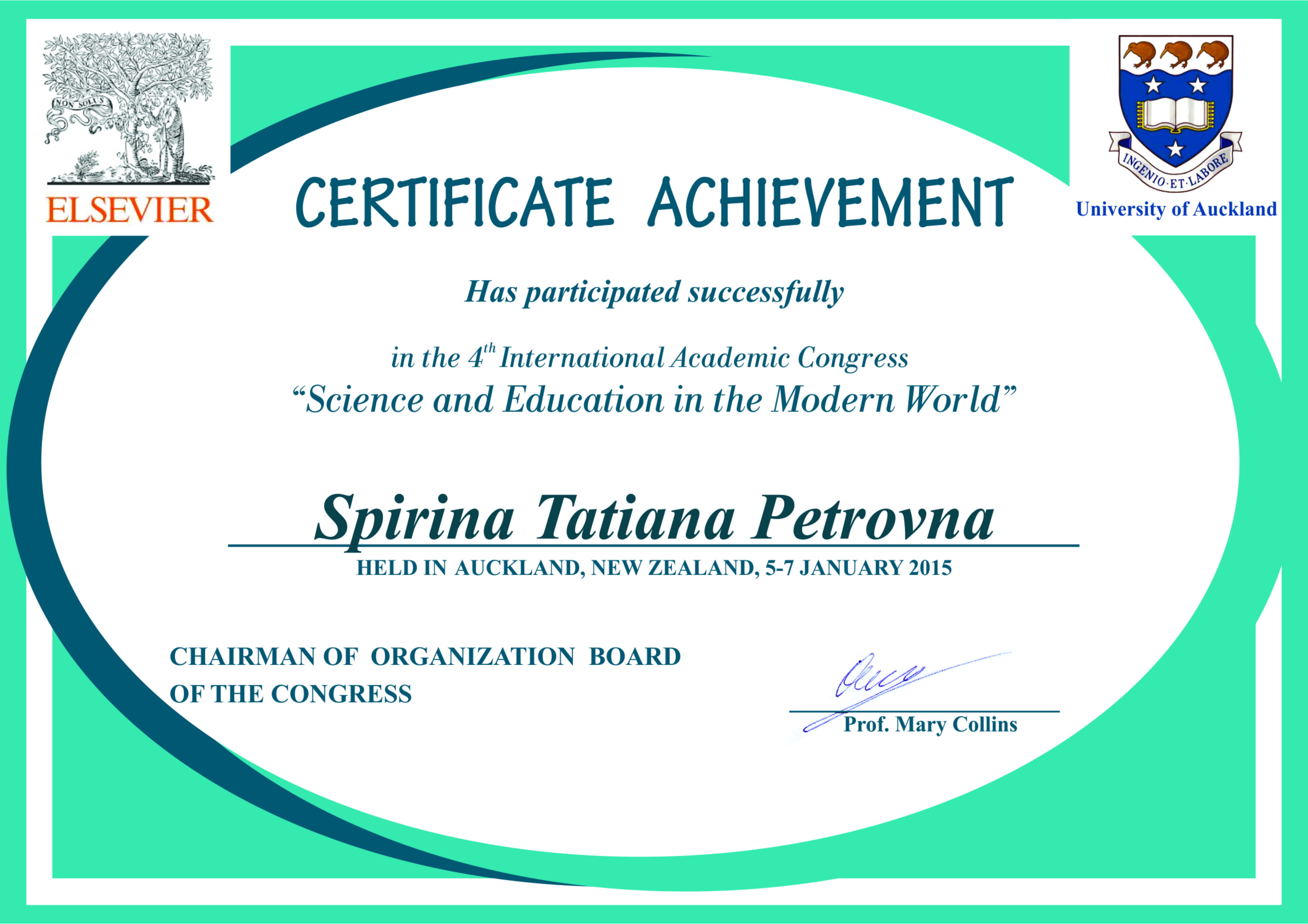 | 732 | ”Наука и образование в современном мире” | Подготовка социальных работников в системе непрерывного образования | Новая Зеландия, Окленд |