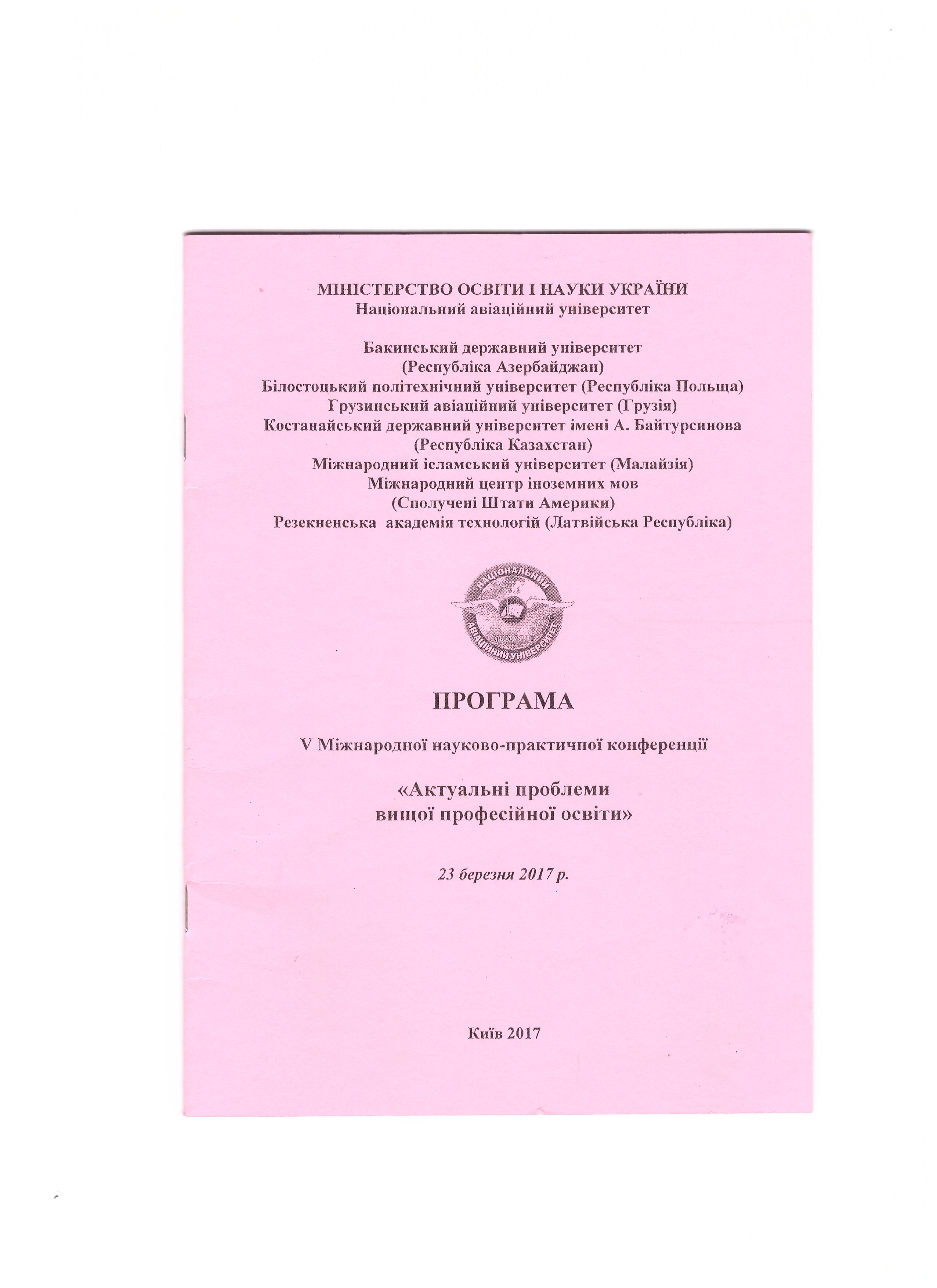 | 4128 | V Міжнародна науково-практична конференція «Актуальні проблеми вищої професійної освіти» | Компетентнісний підхід у формуванні корпоративної культури студентів | м. Київ, НАУ |