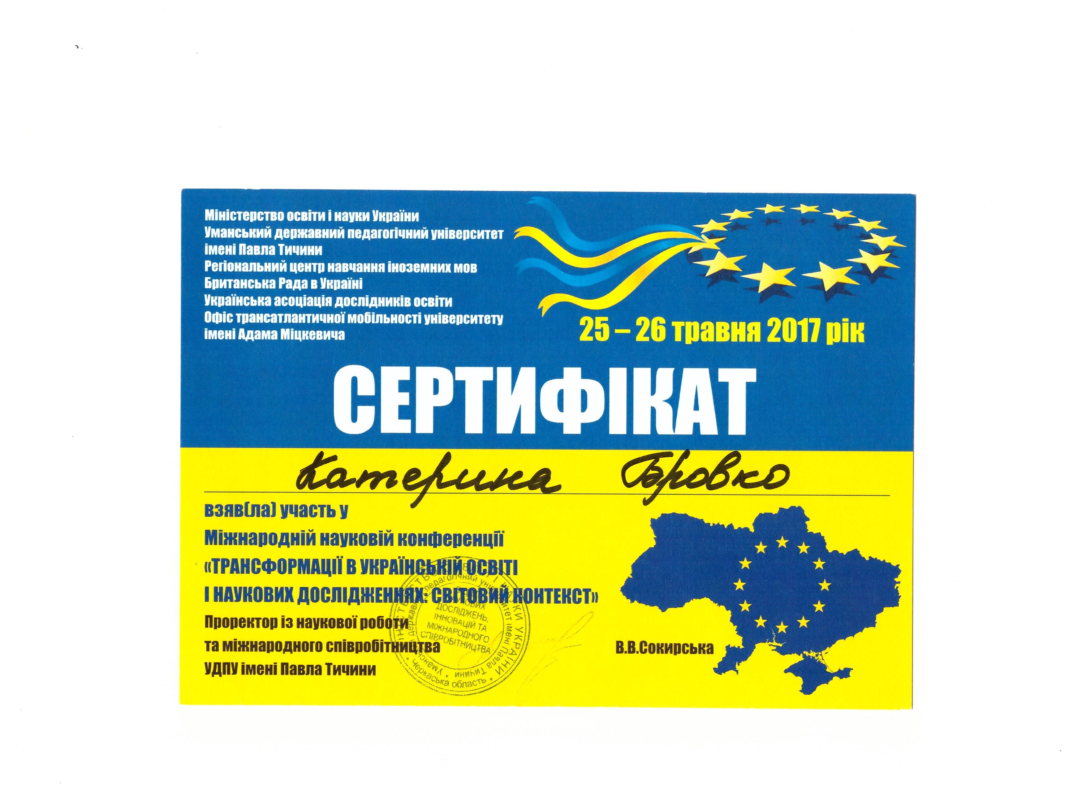 | 4129 | Міжнародна наукова конференція «Трансформації в українській освіті і наукових дослідженнях: світовий контекст» | Роль лідера у формуванні корпоративної культури університету | м. Умань, Уманський держ. пед. ун-т ім. П. Тичини |