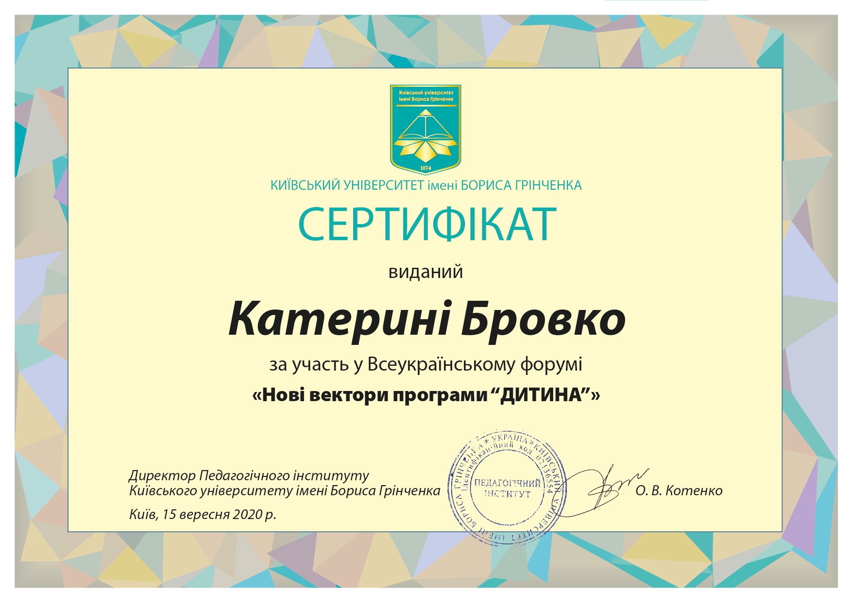 | 5482 | Всеукраїнський педагогічний онлайн-форум НОВІ ВЕКТОРИ ПРОГРАМИ «ДИТИНА» | Відеопрезентація діяльності кафедри дошкільної освіти | Київ |