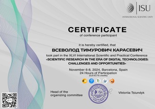 | 13073 | XLVІ Міжнародн.наук.-прак.конф. «Scientific Research in the Era of Digital Technologies: Challenges and Opportunities» | Цифрові медіа та демократія: виклики інформаційної безпеки та перспективи регулювання | м. Барселона, Іспанія |