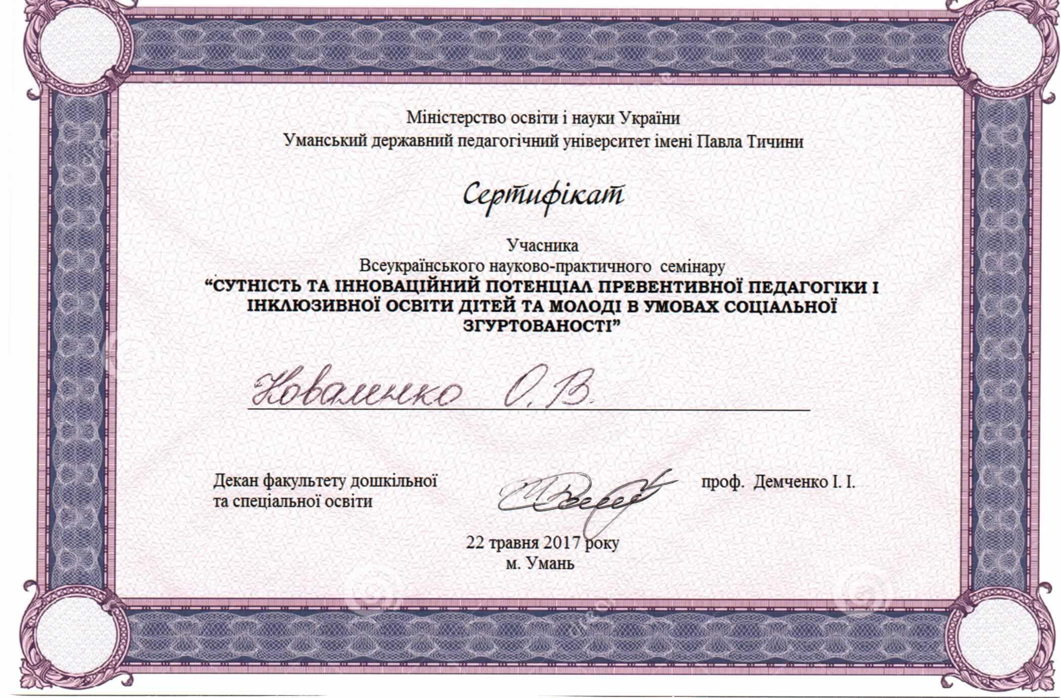 | 1766 | Сутність та інноваційний потенціал превентивної педагогіки і інклюзивної освіти дітей та молоді в умовах соціальної згуртованості | Реалізація інноваційного потенціалу у підготовці організаторів дошкільної освіти до прийняття управлінських рішень | Умань |
