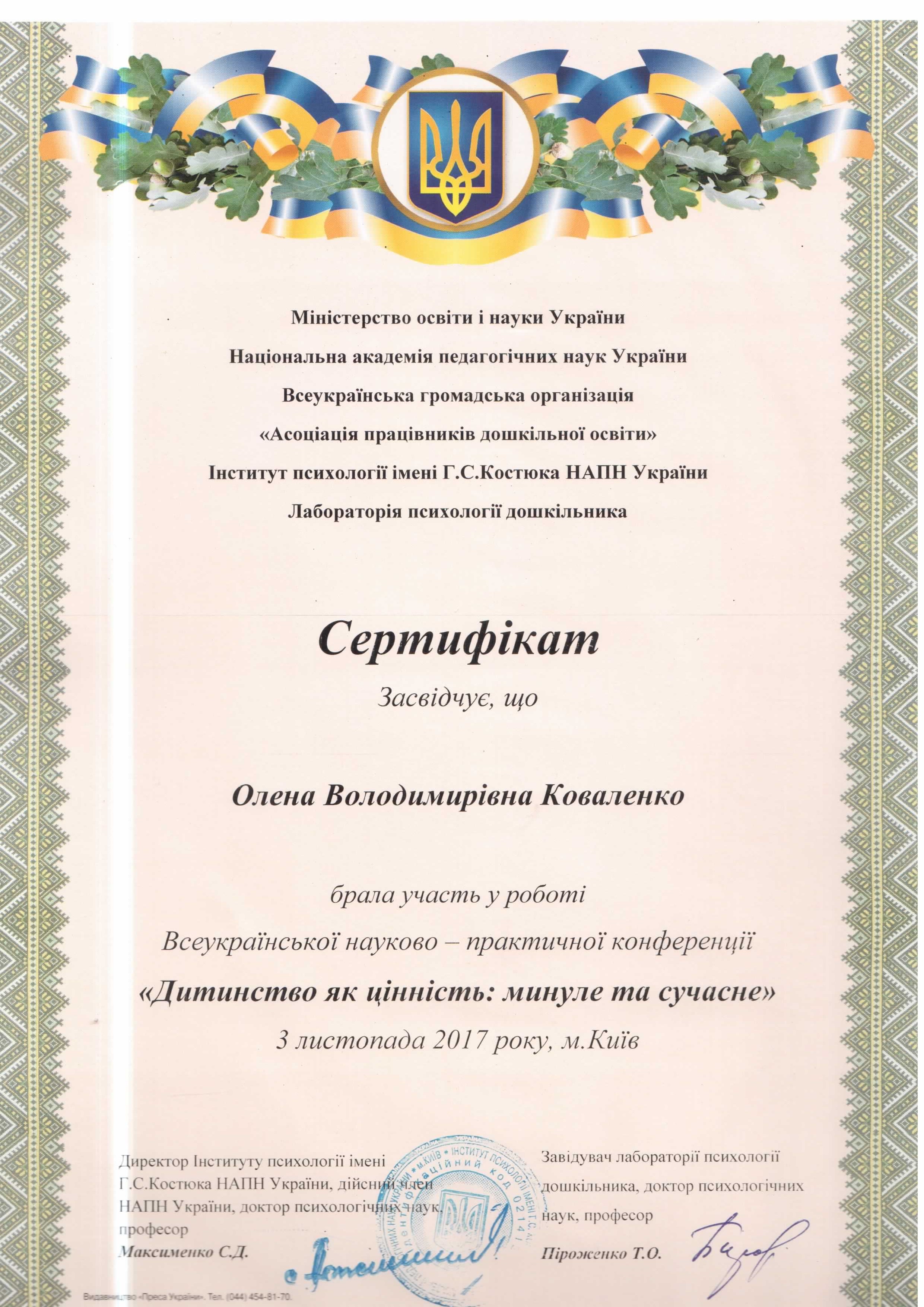 | 5480 | Всеукраїнський педагогічний онлайн-форум НОВІ ВЕКТОРИ ПРОГРАМИ «ДИТИНА» | Cтендова доповідь: "Дитина в сенсорно-пізнавальному просторі" | Київ |