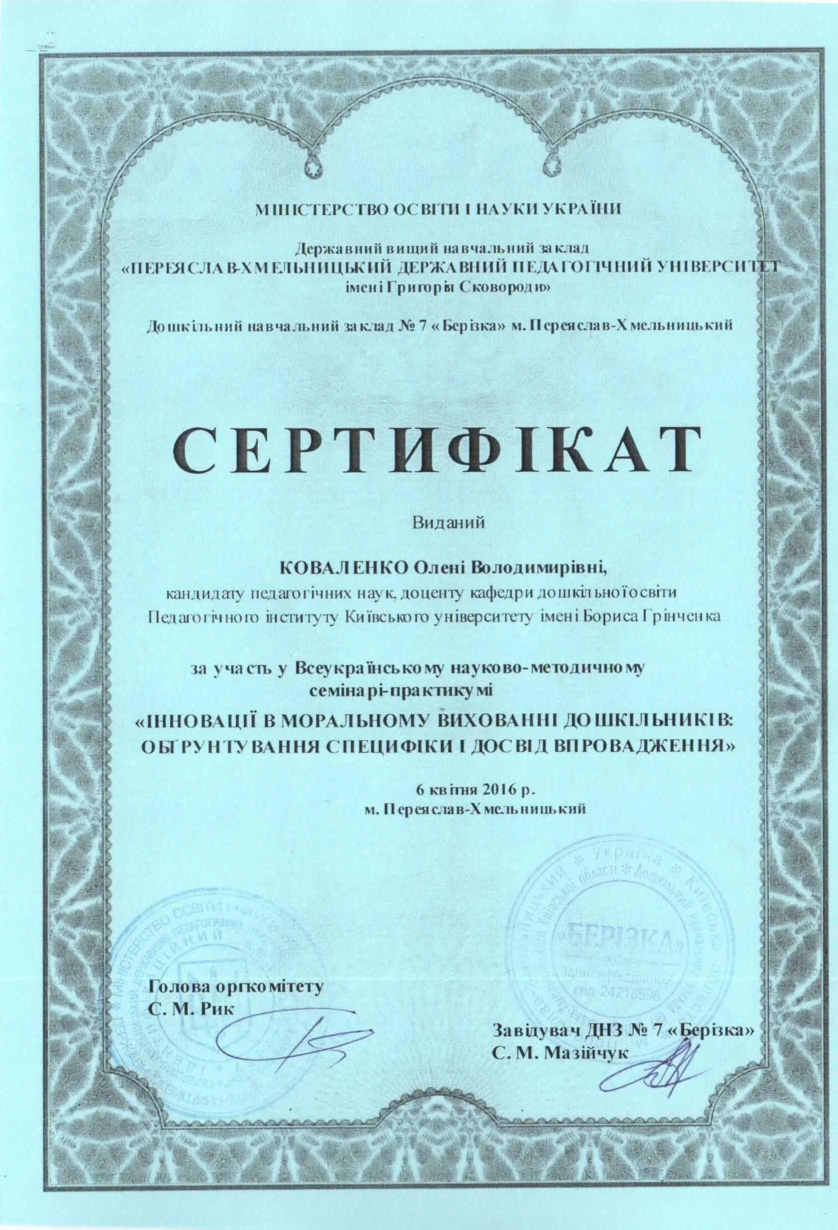 | 268 | Всеукраїнський науово-методичний семінар-практикум | Інновації в моральному вихованні дошкільників:Обгрунтування специфіки і досвід впровадження | ДНЗ№7 м.Переяслав-Хмельницький |