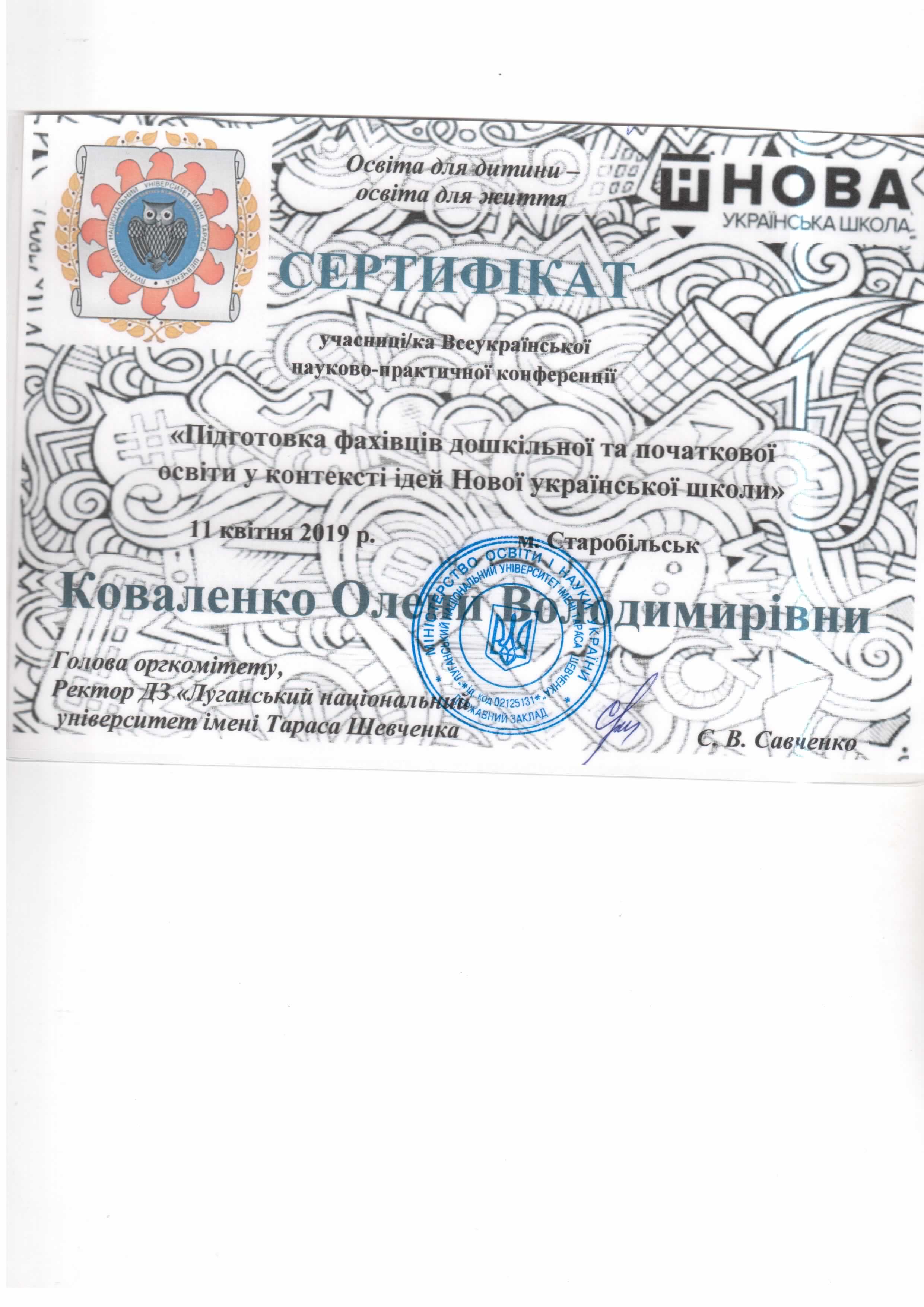 | 4164 | Підготовка фахівців дошкільної та початкової освіти у контексті ідей Нової української школи | Шляхи формування мотиваційної готовності майбутніх вихователів до самореалізації в контексті концепції НУШ | м. Старобільськ |