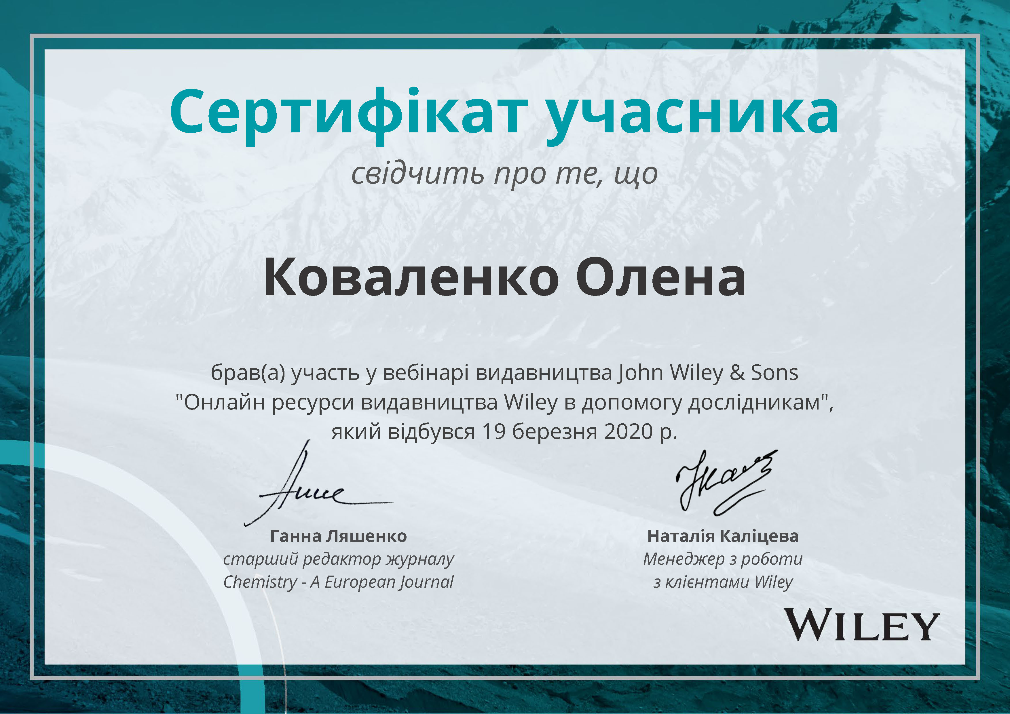 | 5226 | Вебінар "Онлайн ресурси виробництва Wiley в допомогу дослідникам" | - | Київ |