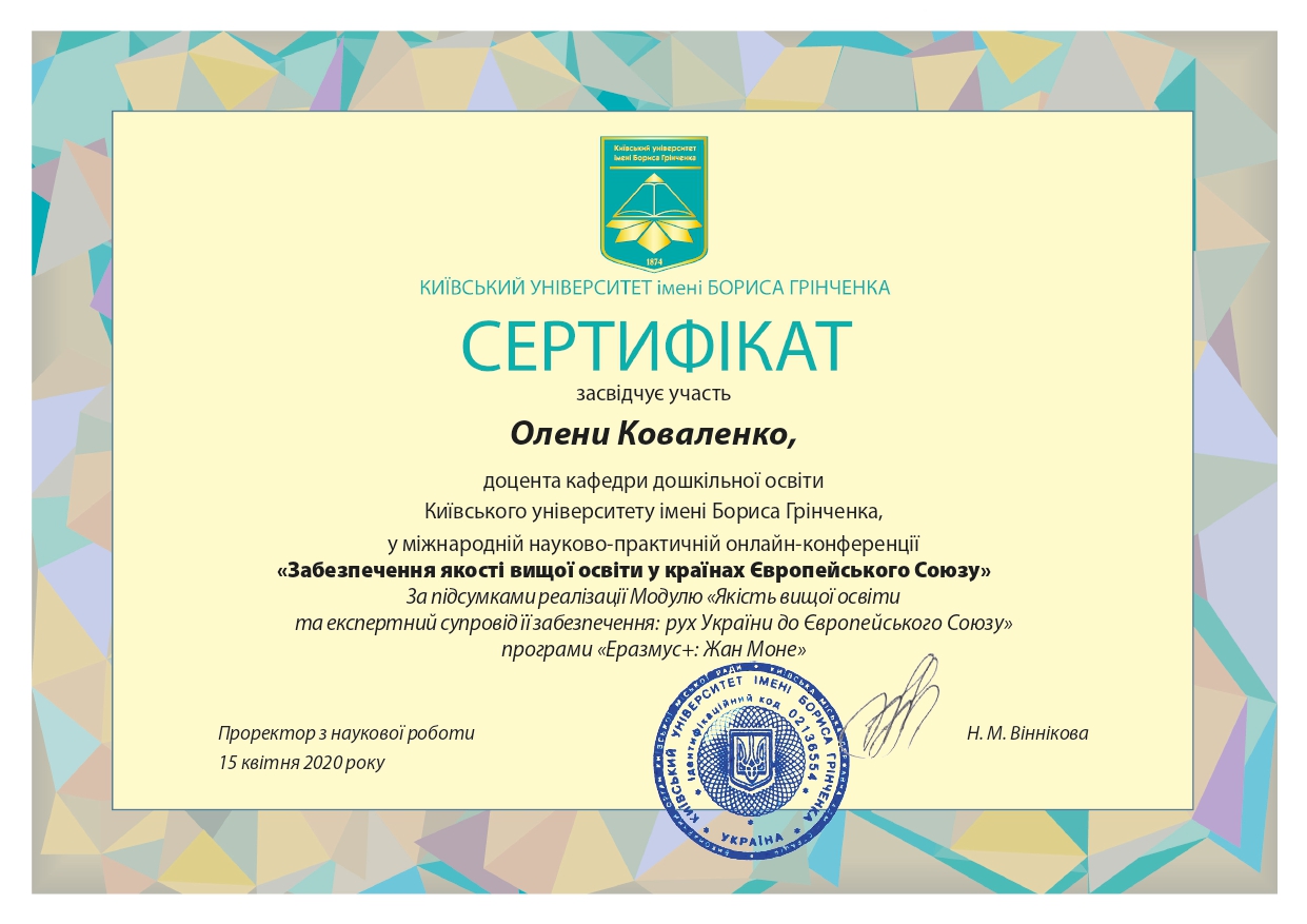 | 148 | Факультет педагогічної освіти | Кафедра дошкільної освіти | 14.4 | 1 | 2025 | https://www.researchgate.net/profile/Olena_Kovalenko7 |