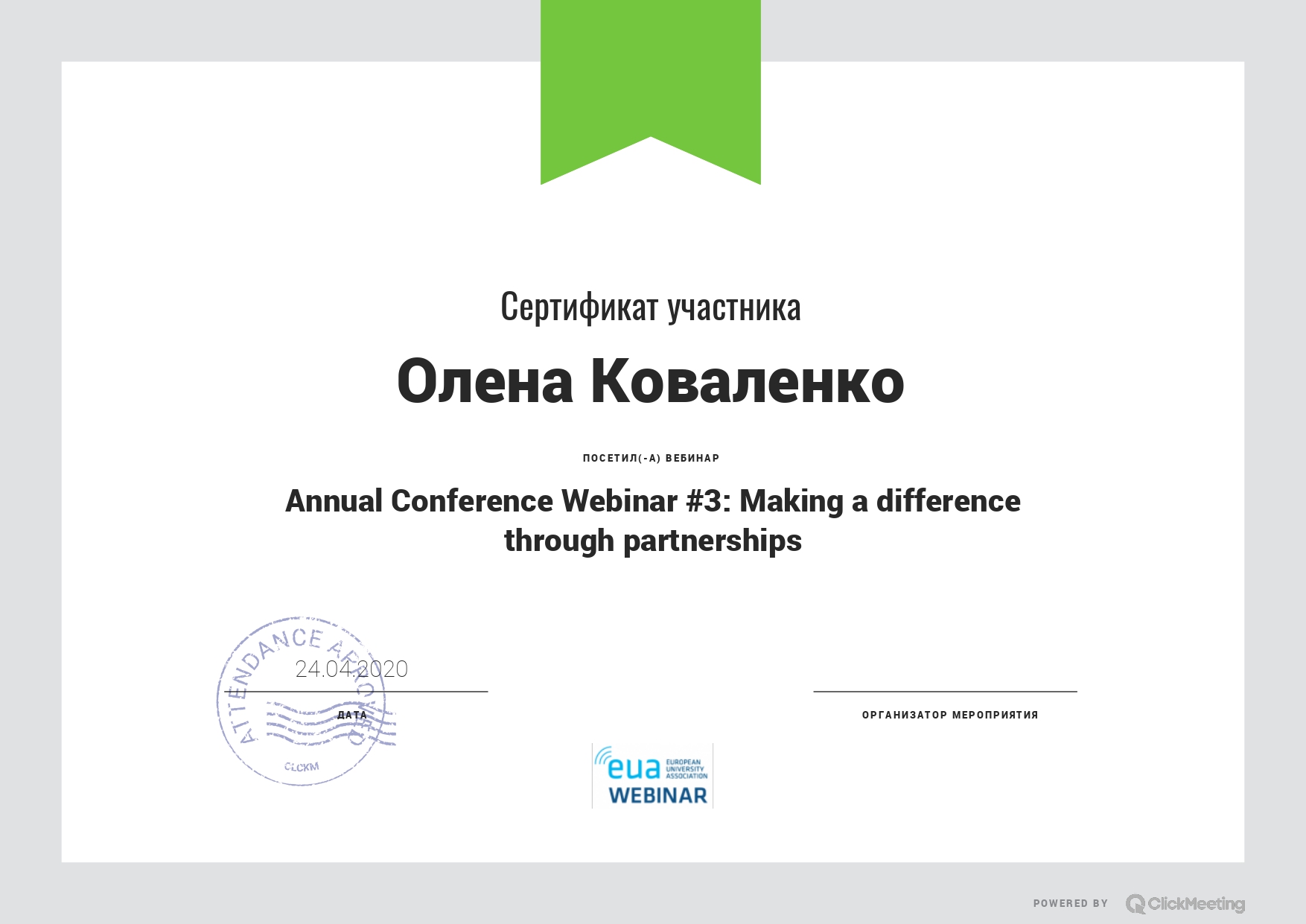 | 5286 | Annual Conference Webinar #3: Making a difference through partnerships | - | Брюсель |