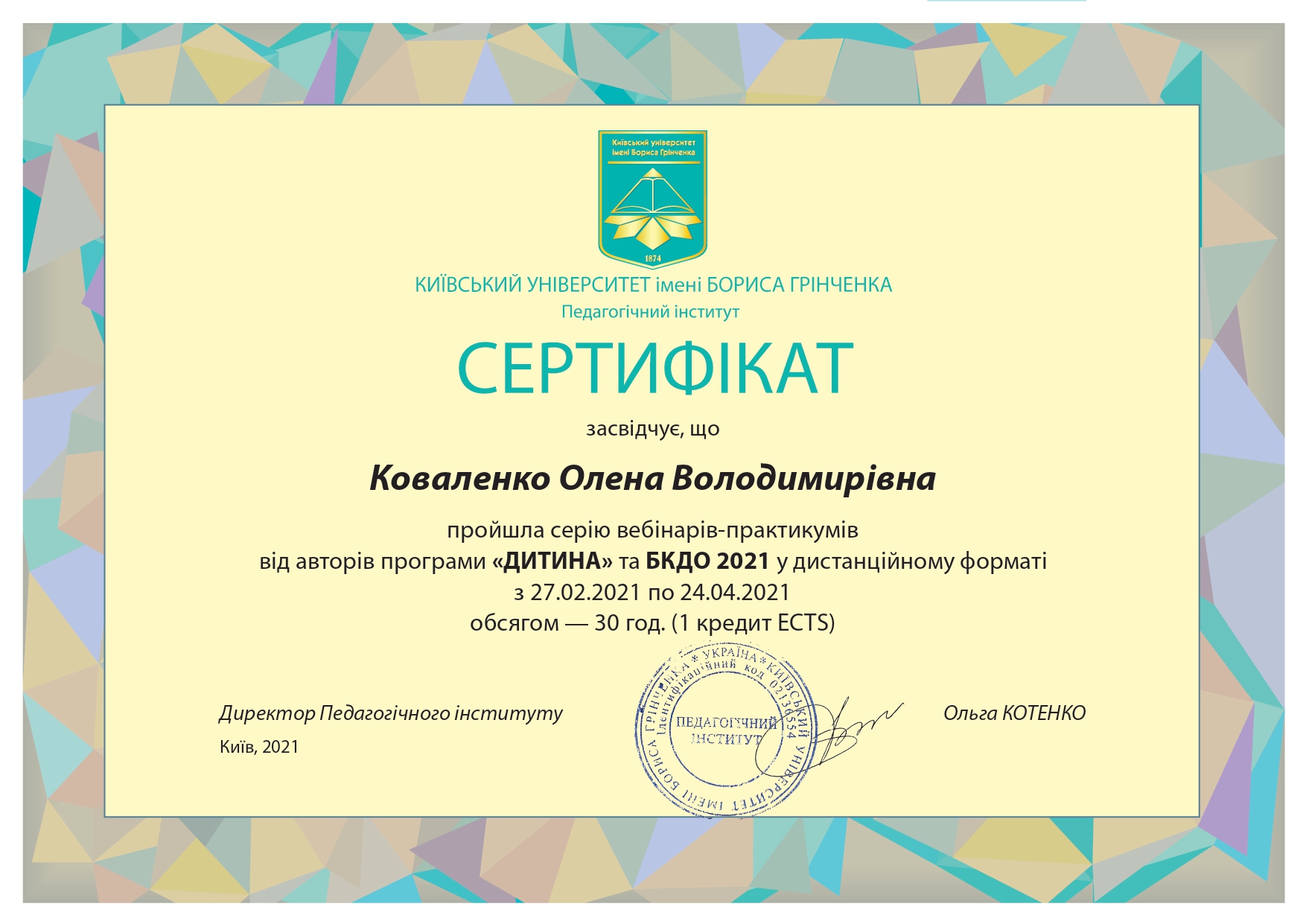 | 6706 | Серія вебінарів-практикумів від авторів програми "Дитина" та БКДО2021 в дистанційному форматі (27.02.- 24.04.2021).\ | "Дитина в сенсорно-пізнавальному просторі" | Київський уніерситет імені Бориса Грінченка |