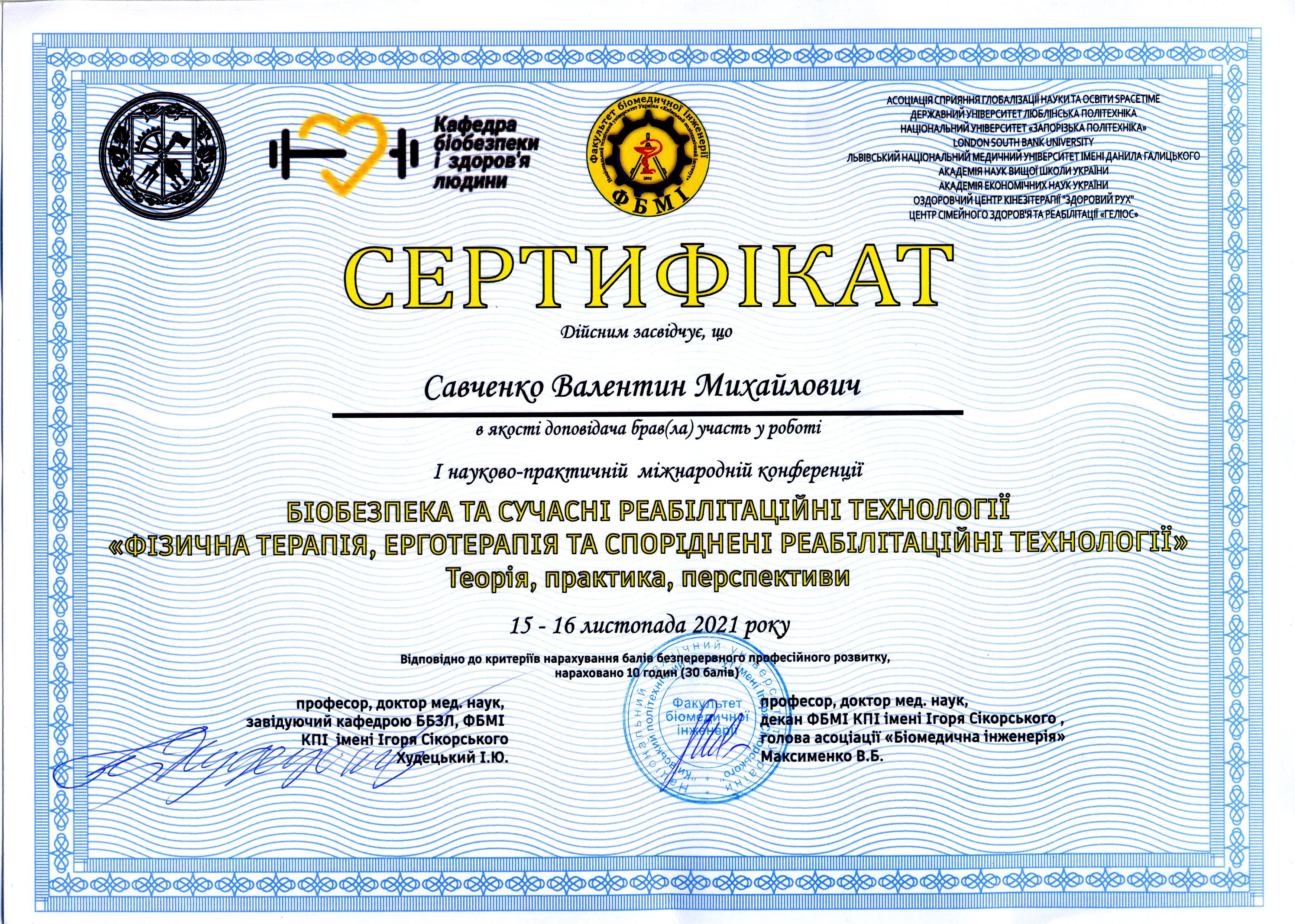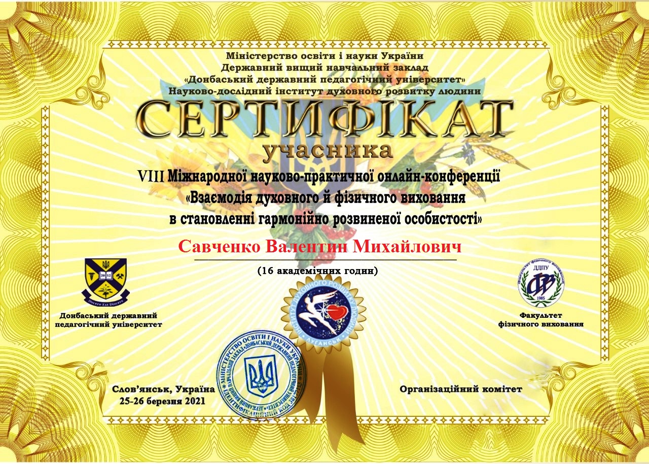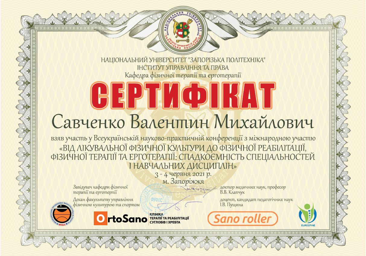 | 2664 | Інше | Інший модуль | Савченко ВМ ФЗФВС Кафедра фізичної реабілітації Сертифікат англійська мова 2018.pdf | 31.05.2018 00:00 |