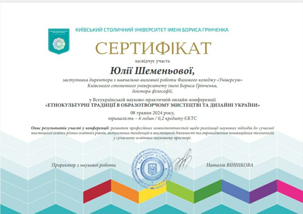 | 56 | Фаховий коледж «Універсум» | ЦК образотворчого мистецтва та дизайну | Загальноуніверситетський мовно-літературний конкурс «Словник Грінченка і сучасність» | 2024 |