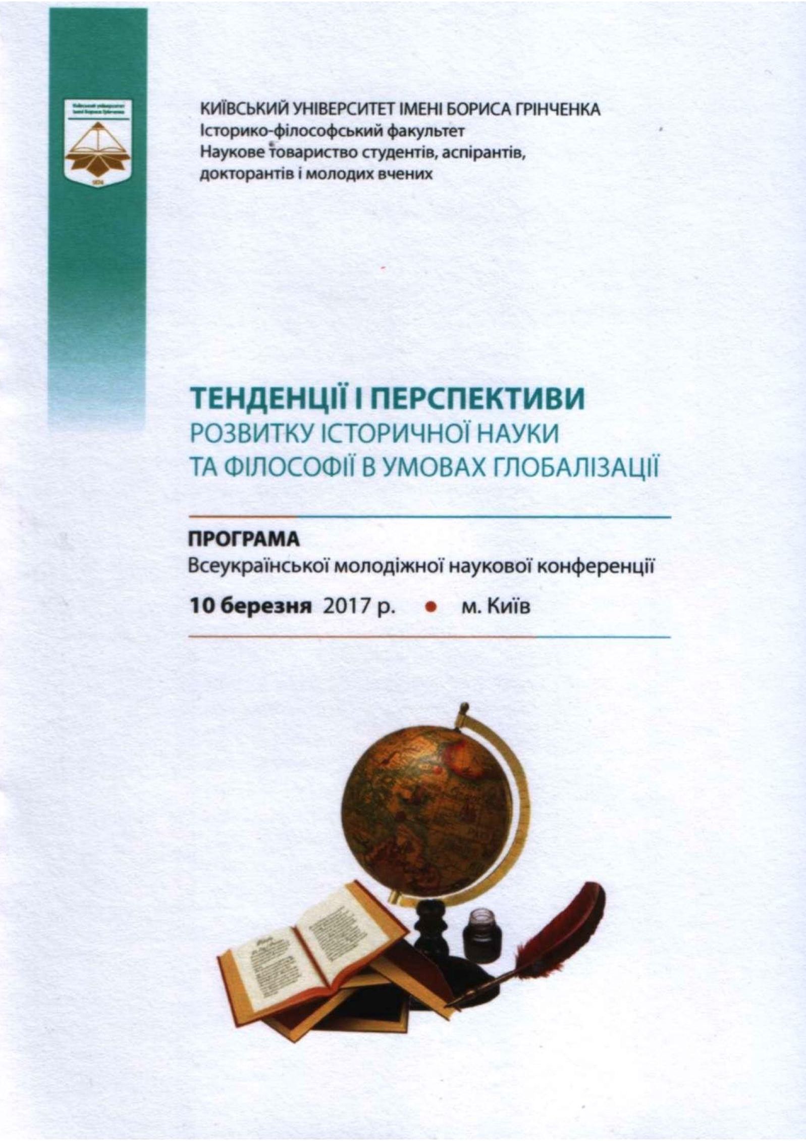 | 1765 | Тенденції і перспективи розвитку історичної науки та філософії в умовах глобалізації | Мова виборів: філософсько-комунікативний аспект | м. Київ |