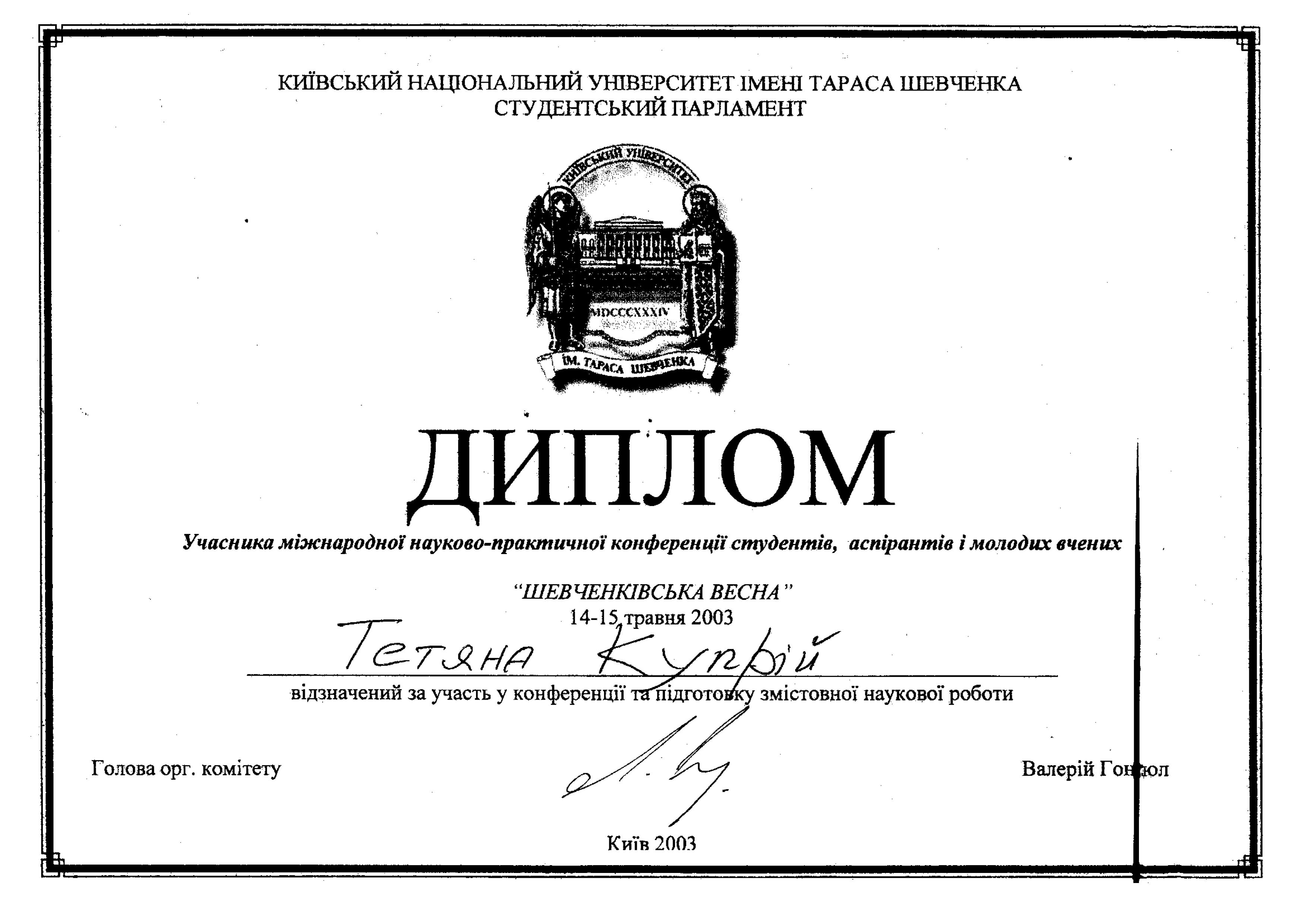 | ID | Назва | Тема доповіді | Місце проведення | Документ, що засвідчує | Дата проведення |