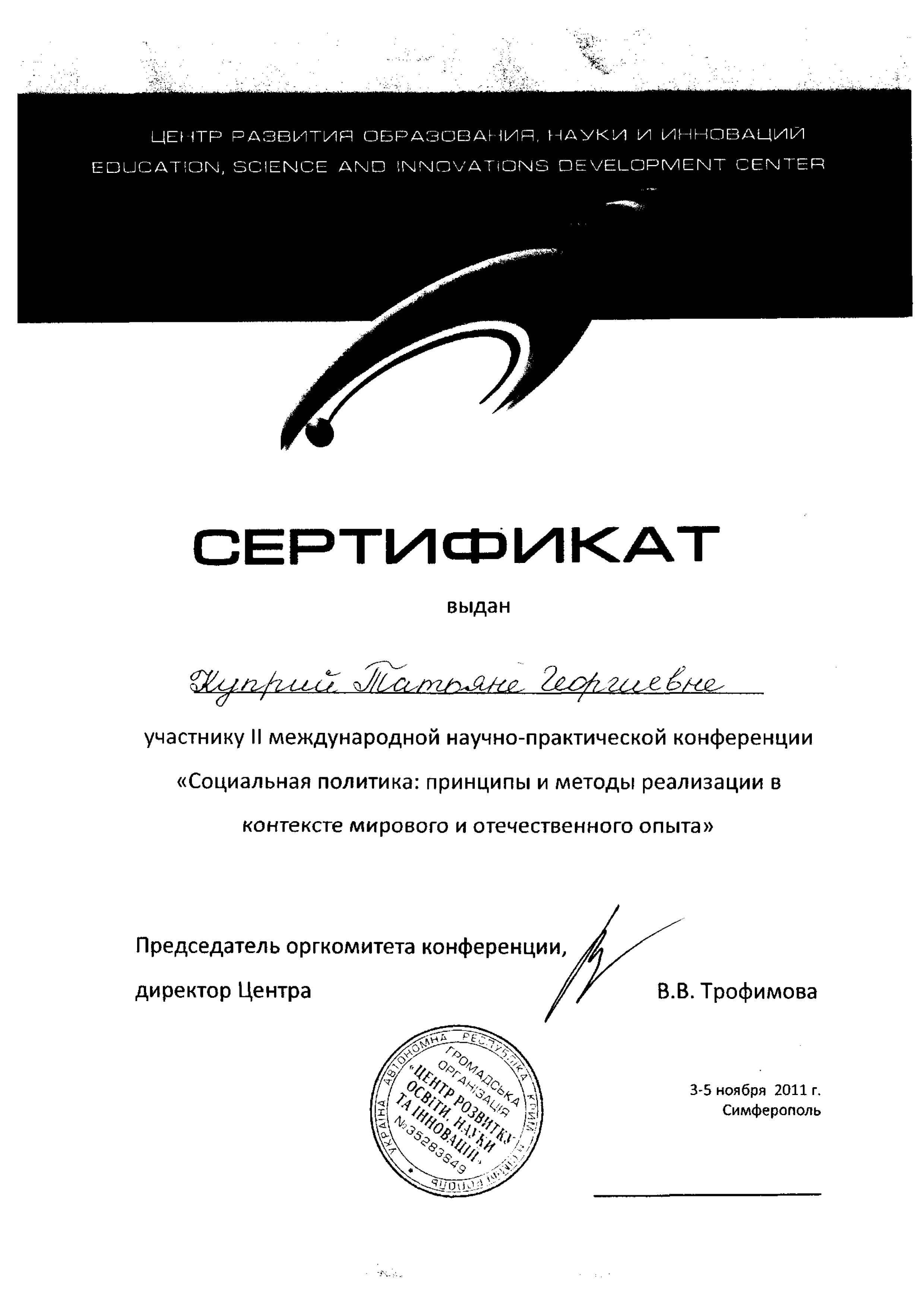 | 348 | 'Социальная политика: принципы и методы реализации в контексте мирового опыта' | Соціальна політика у сфері допомоги по догляду за дитиною уряду А. Меркель | Симферополь. Украина |