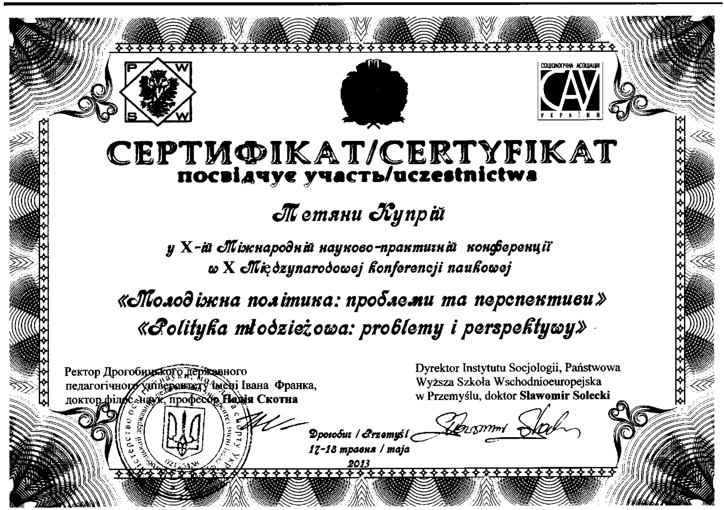 | 350 | Молодіжна політика: проблеми та перспективи | Ціннісно-смислові орієнтири студентської молоді щодо громадської діяльності | Дрогобич. Україна |