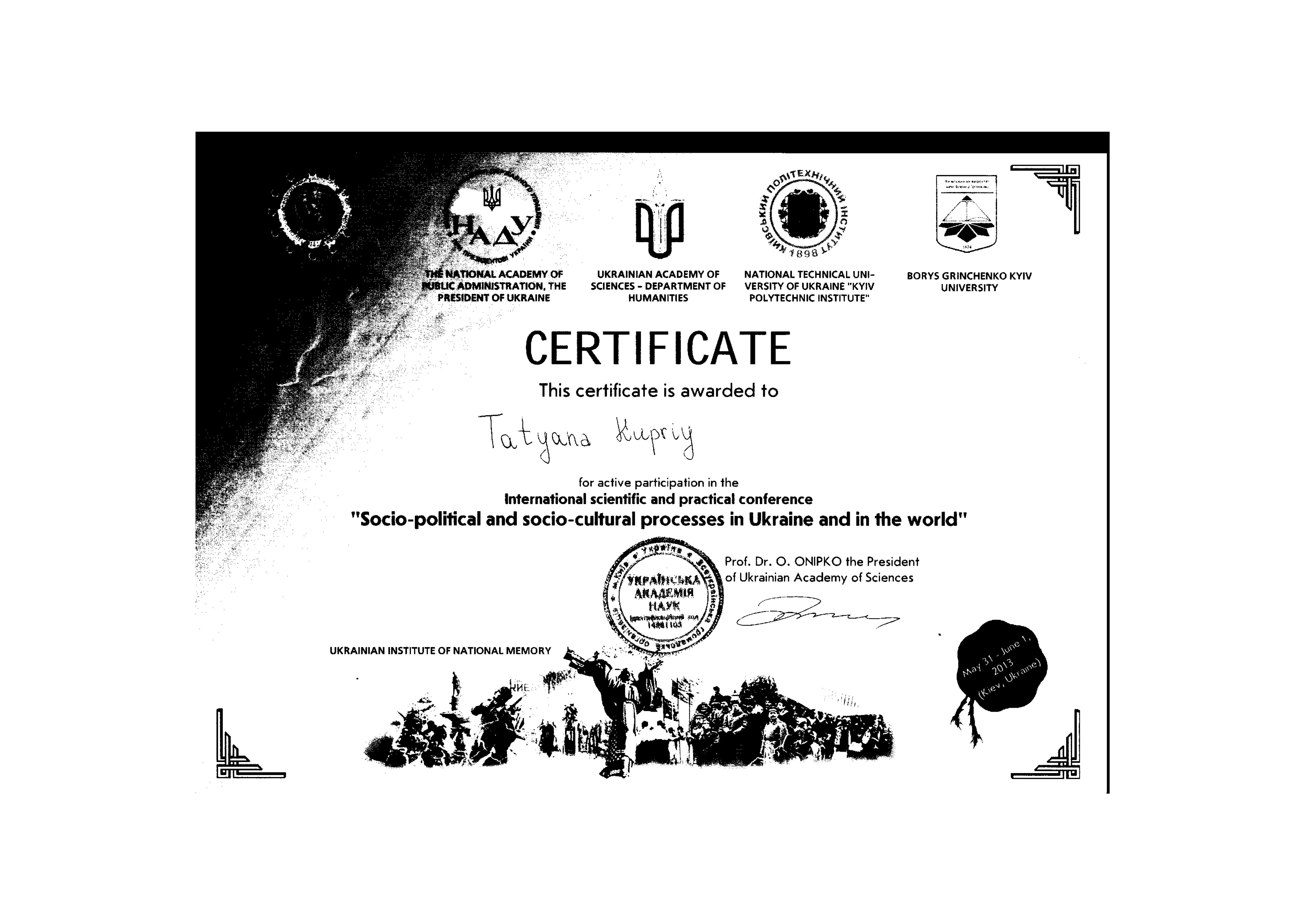 | 1872 | Національні цінності й національні інтереси в системі публічного управління | Формуванні інформаційно-смислового середовища в Україні | м. Київ |