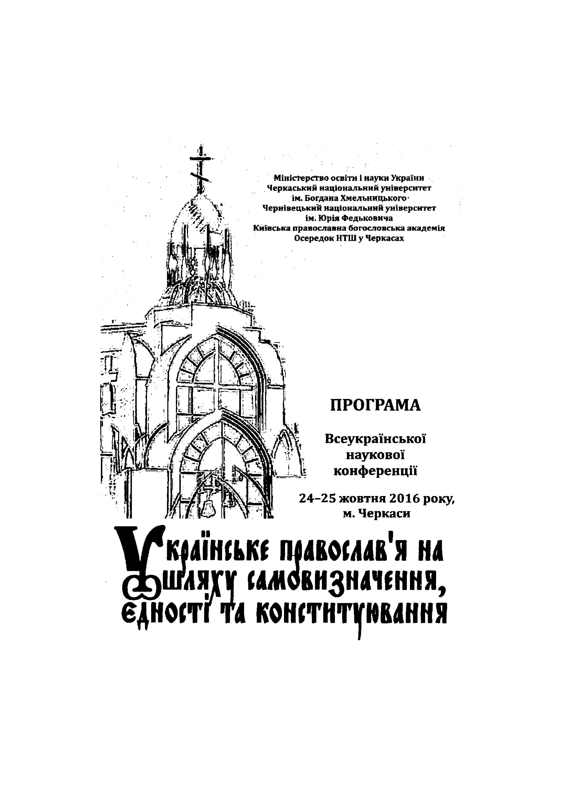 | 354 | Українське православ’я на шляху самовизначення, єдності та конституювання | Християнська демократія в конфесійному просторі світу та України | Черкаси |