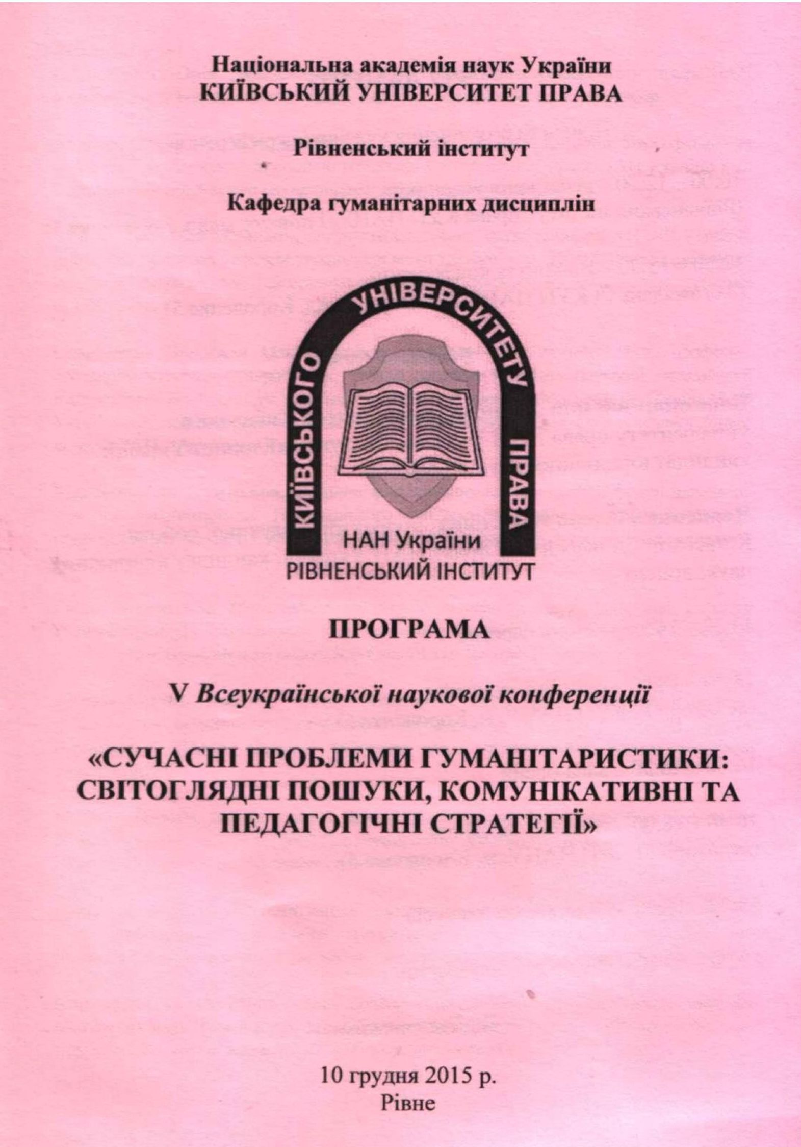 | 355 | Сучасні проблеми гуманітаристики: світоглядні пошуки, комунікативні та педагогічні стратегії | Сучасна модель випускника приватного вищого навчального закладу України | м. Рівне |