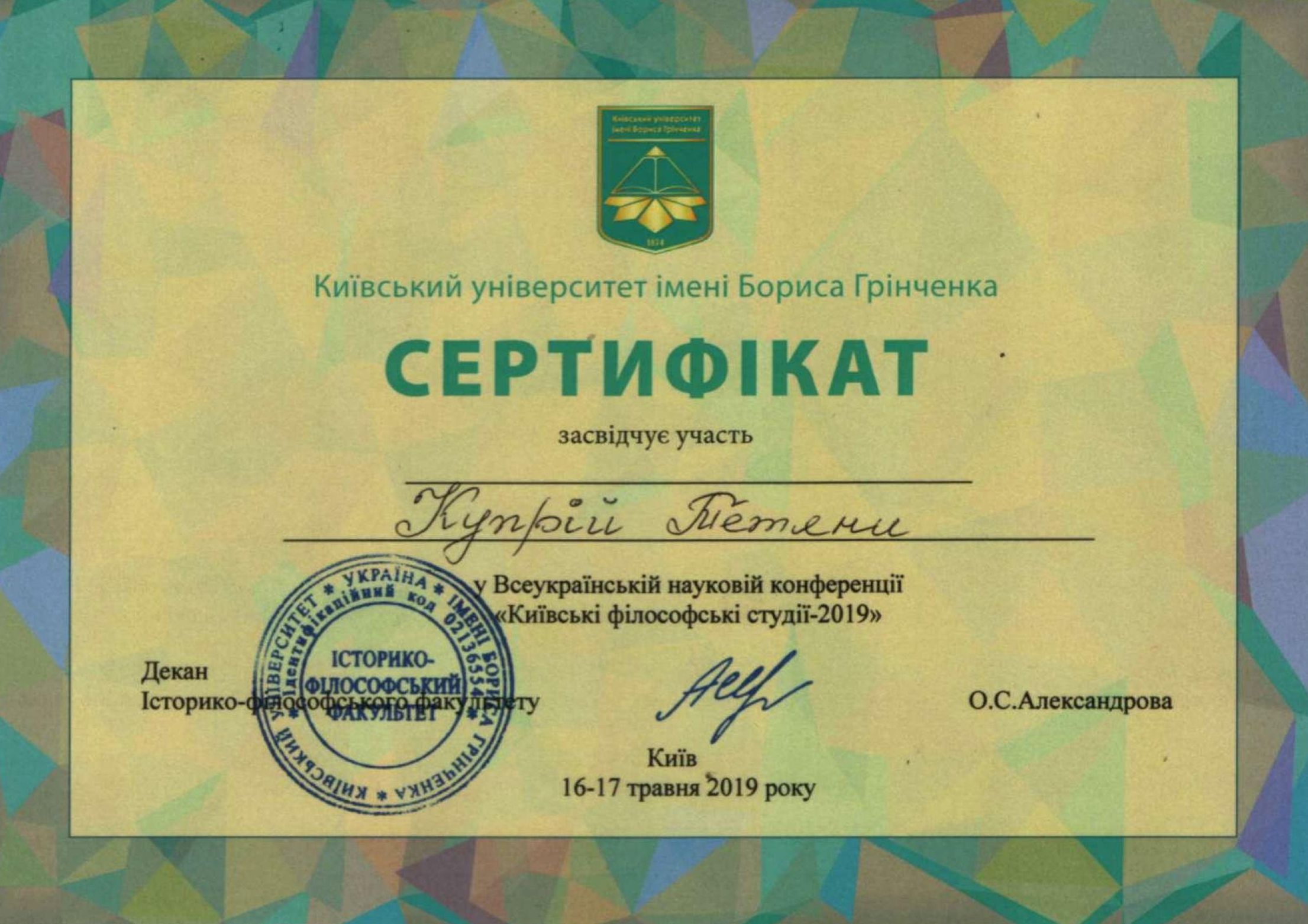 | 4200 | Київські філософські студії - 2019 | Соціологічне опитування "Викладач очима студентів" як засіб вимірювання якості освіти ЗВО | Київ |