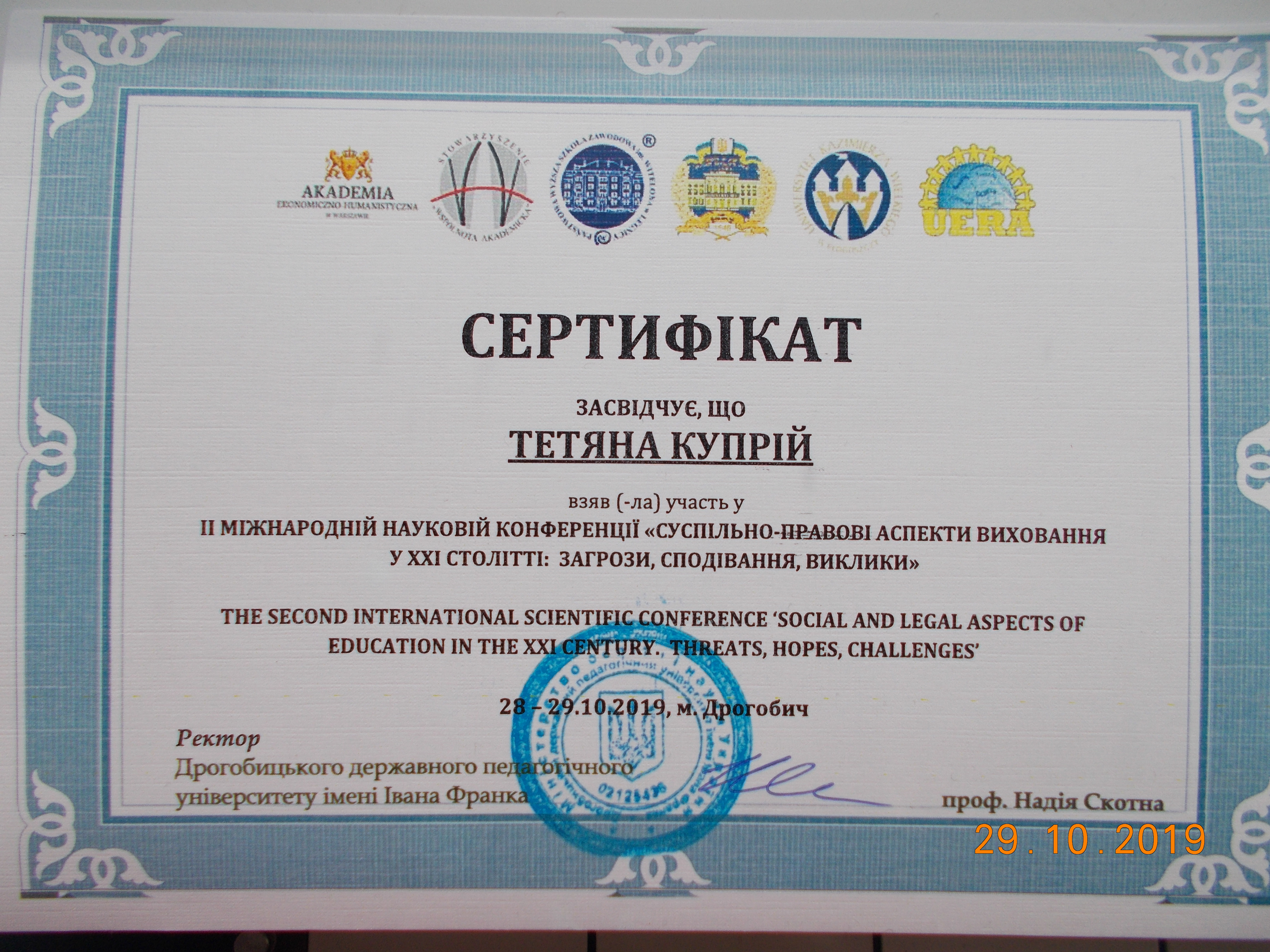 | 4435 | СУСПІЛЬНО-ПРАВОВІ АСПЕКТИ ВИХОВАННЯ У XXI СТОЛІТТІ: ЗАГРОЗИ, СПОДІВАННЯ, ВИКЛИКИ | Концепція громадянської освіти і виховання в Україні: правове підґрунтя та зміст | Дрогобич |